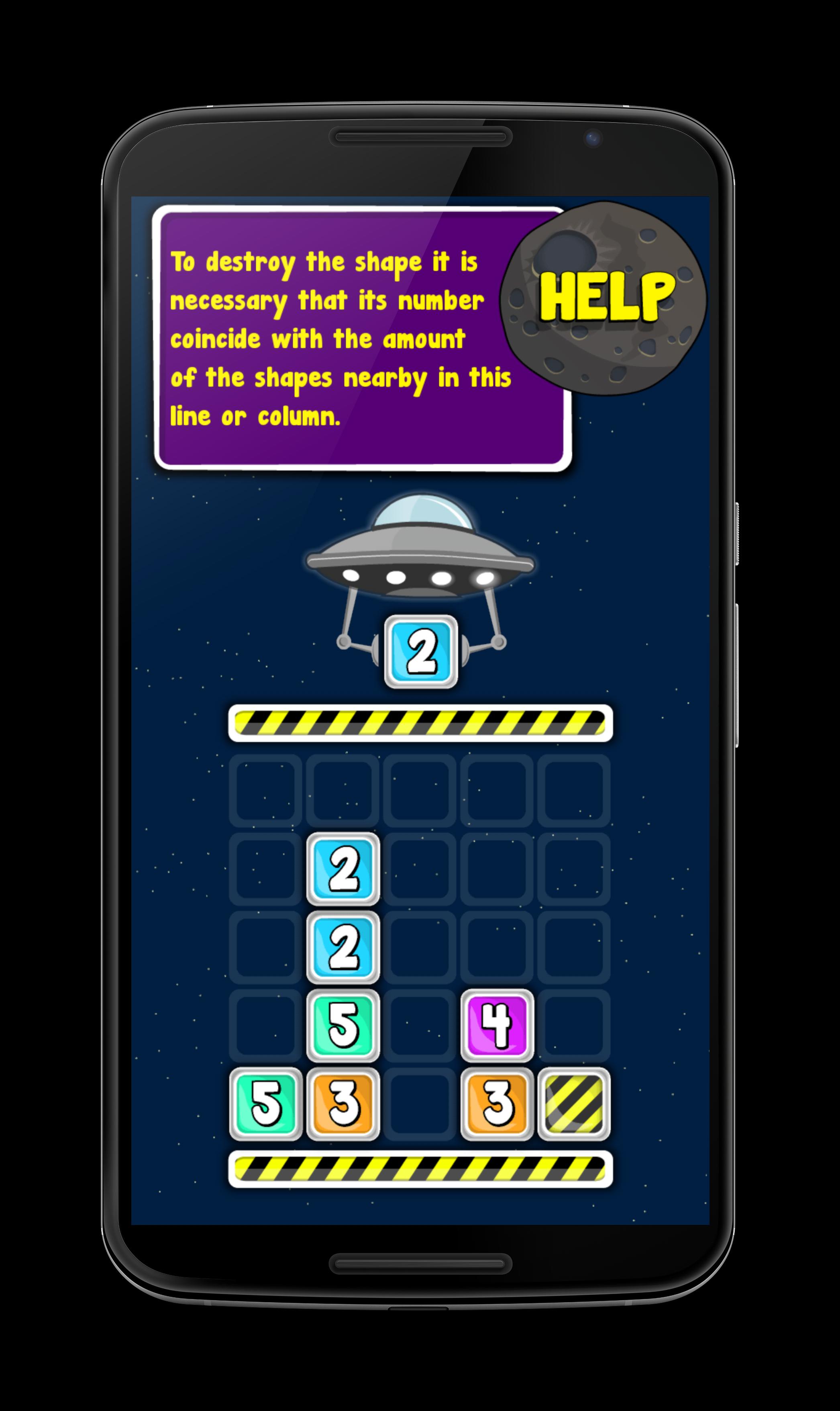 Base of the puzzle is a square box 7 * 7. Initially, in the screen there are some color squares with numbers, some of them are closed. With every new step the number of squares will increase and you need to place them on the playing field. Dragging the square you must place it on the playing field. Destruction of the squares brings you the points corresponding to the numbers that are shown on the cubs if they are placed correctly. The square with 1 (one) will always disappear if it is only one in a row or column. The square with 7 (seven) should be placed as the last one in any column or row.