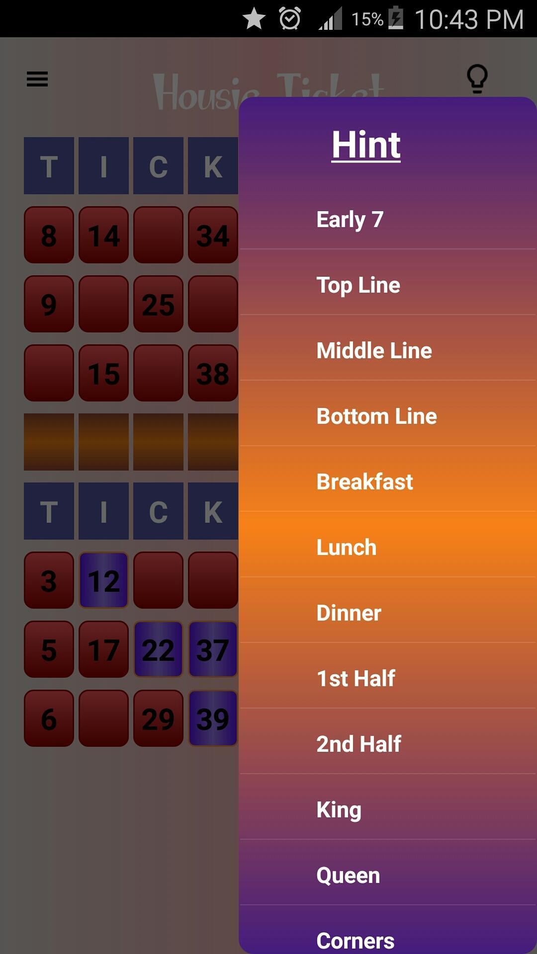 4. Hint option providing caller or players meaning of any category with highlighted numbers in a housie ticket
