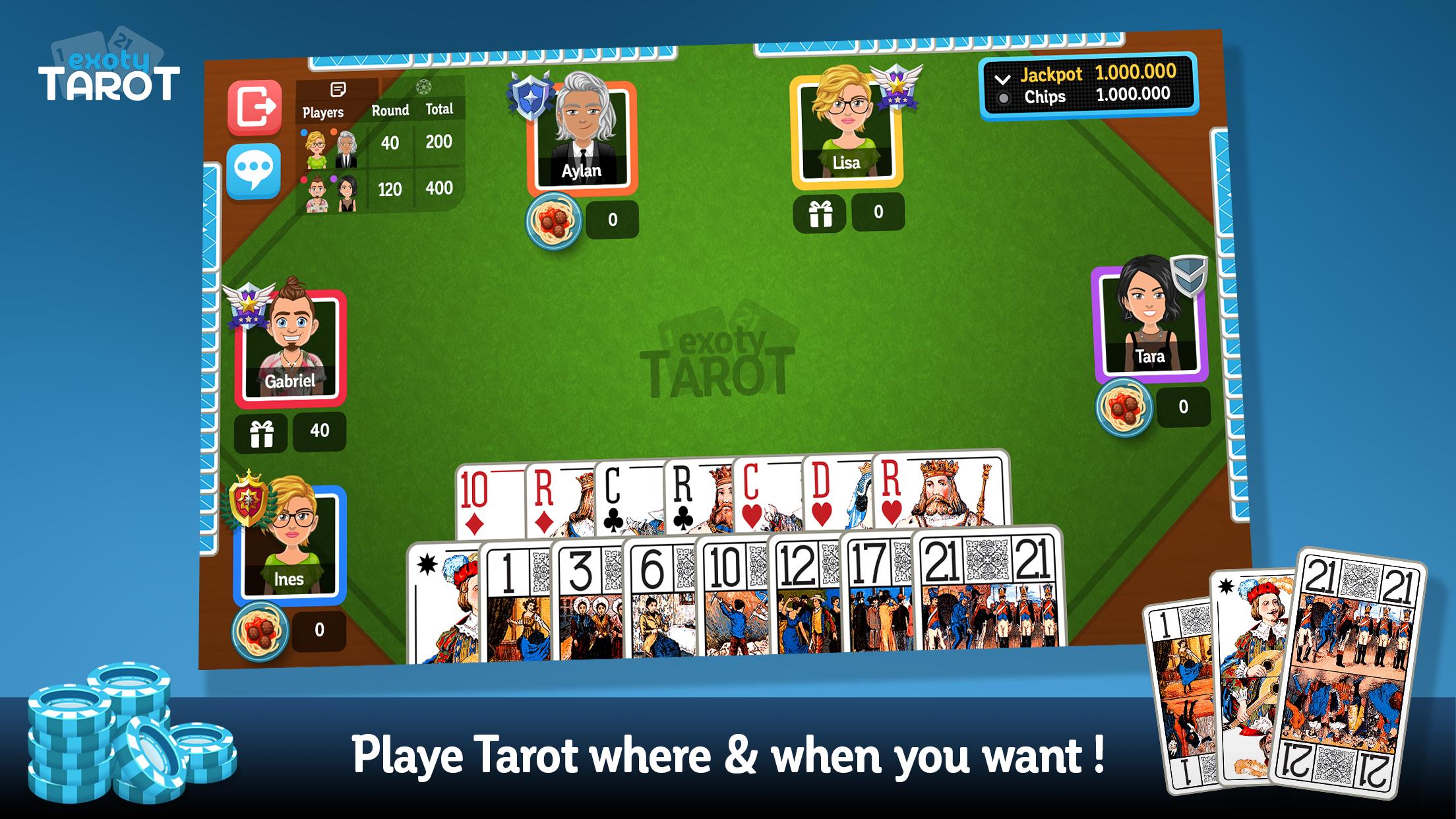 You can play tarot with 3,4 or 5 players the game respects the real rules of the F.F.T. Beginner or confirmed you will face players of your level according to the availabilities, in which case, you will face a player approximately of your level. In accordance with the French law of card games, the distribution of cards is 100% random for all games and for all players and this will NEVER change! Thank you for playing Exoty Tarot ?