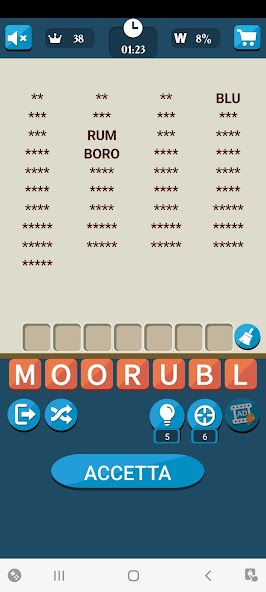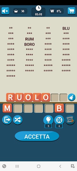 There 'option Hint (Tip) to help you guess the hidden words. Open a single letter at random for each hidden word. The suggestion is activated as soon as you can guess 50% of the hidden words.