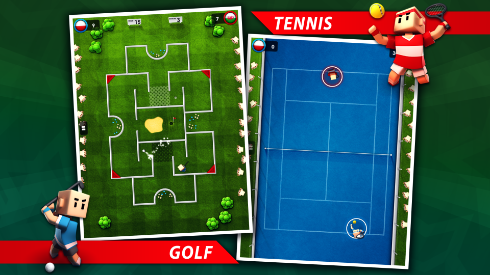 • 9 different sports to play, Soccer, Basketball, Hockey, Baseball, Tennis, Bowling, Archery, American Football and Golf.