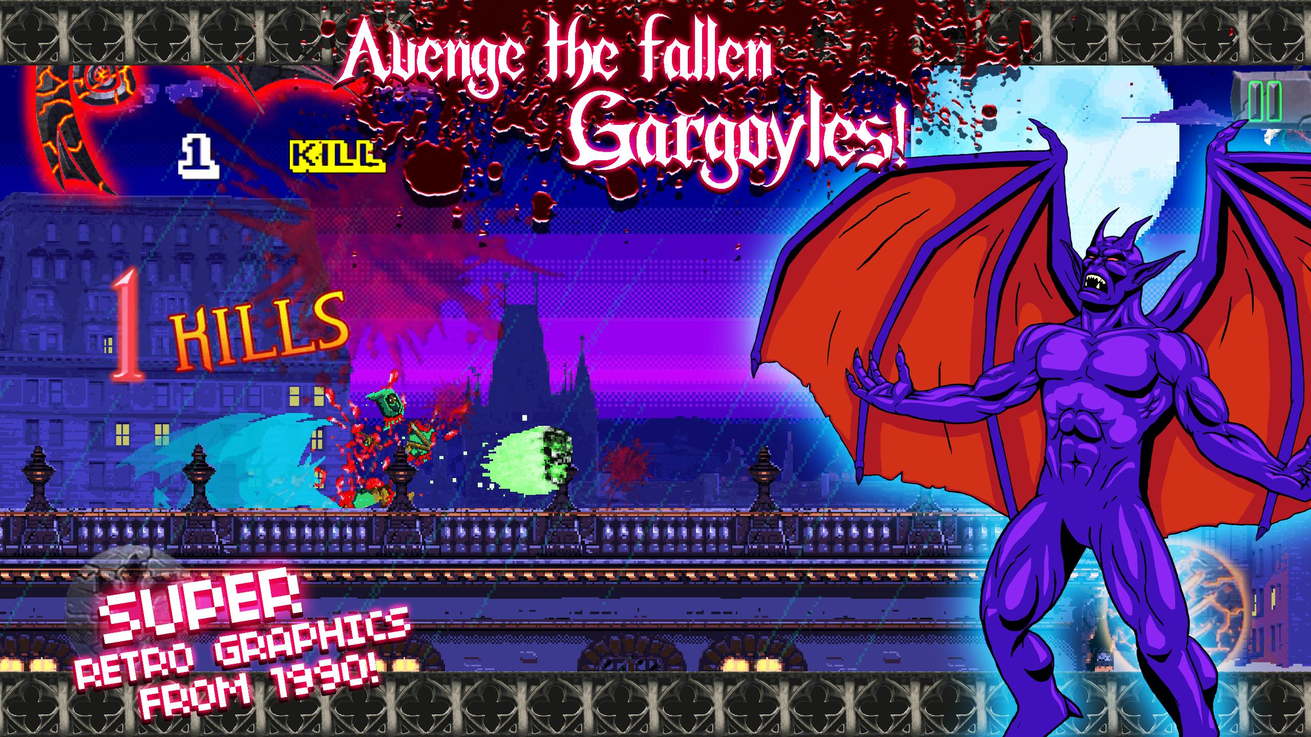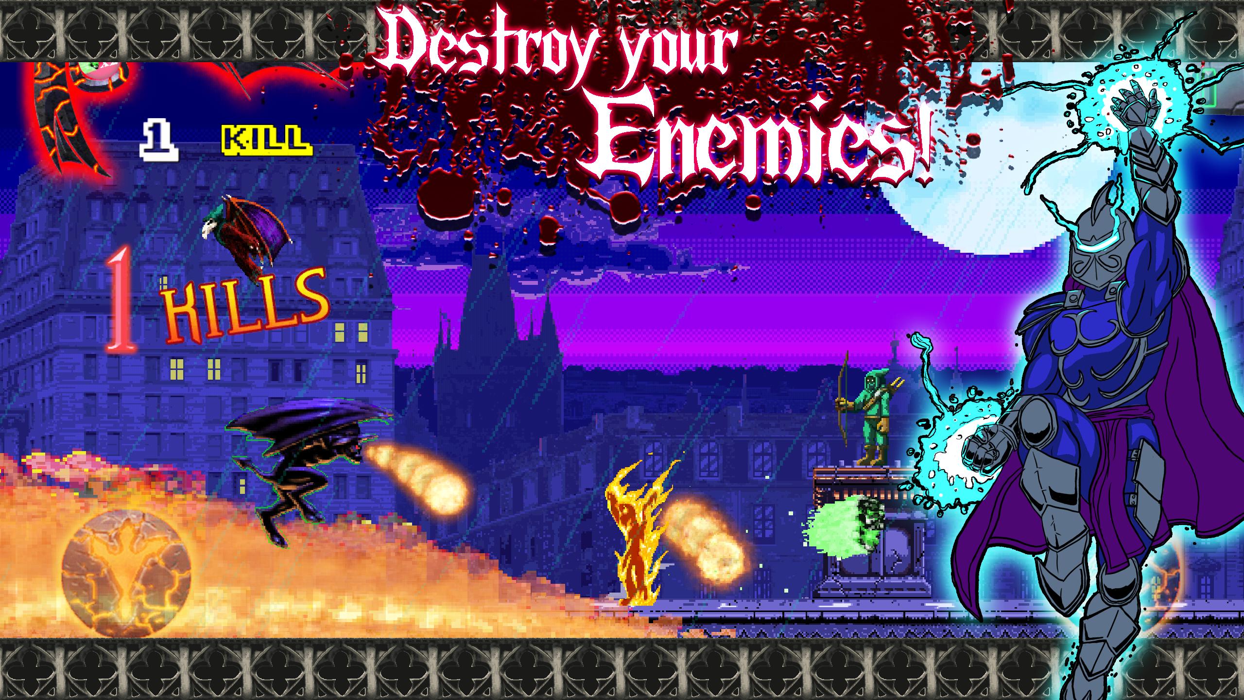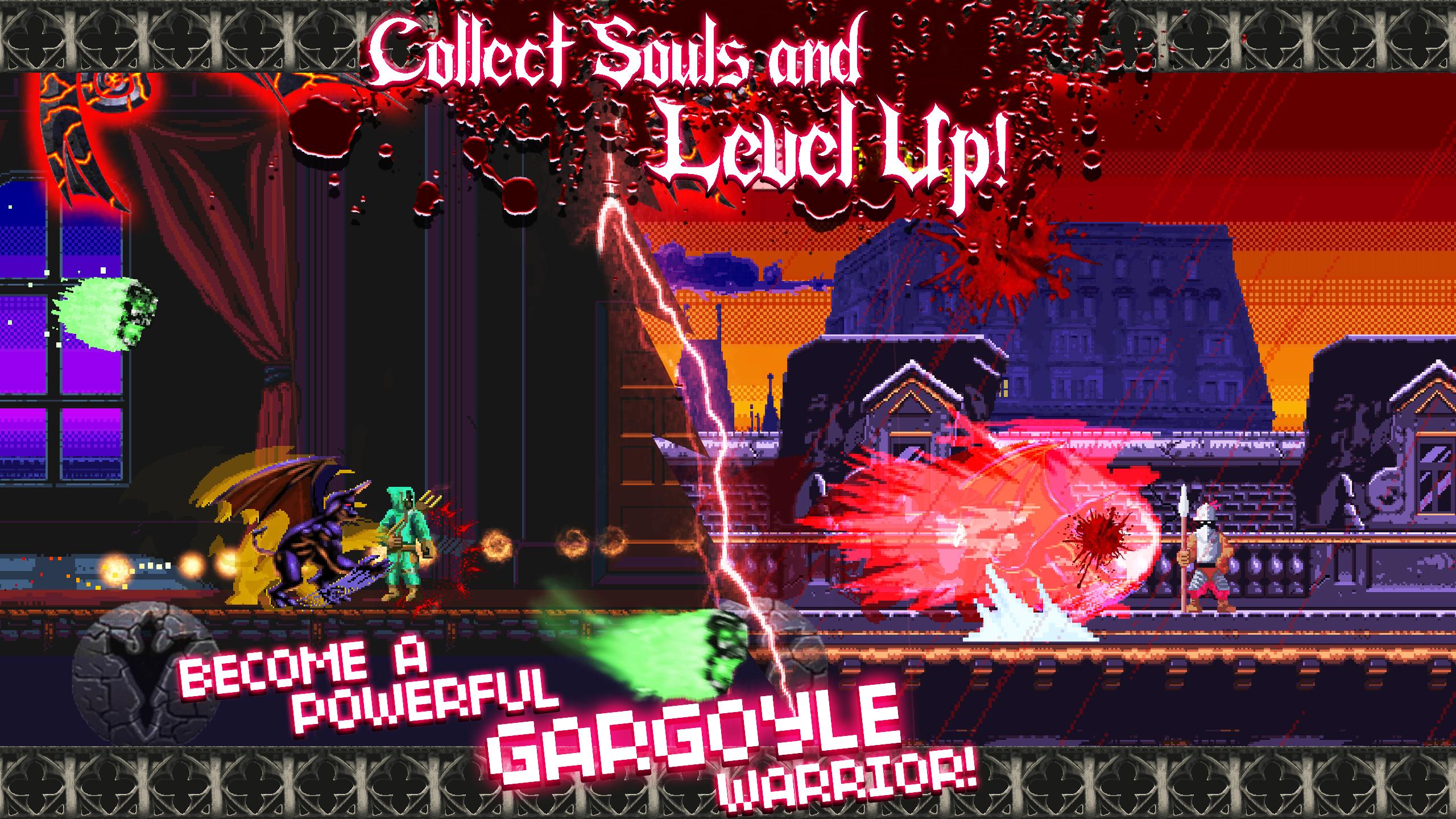 The curse of the blue moon is lifted and the blood rush begins; freeing immortal crown harbinger Gargula from an eternity in a cathedral stone tomb. Rage across rooftops; Fight, slash, Fire breath and hunt your way across the Gothic castles as a Reaver of Souls. Possessed Archers, Knights Templar with Golden Axes, Sorcerers, Mages, evil Gargoyles, Vampyre, Chimera and Barbarians; leaving a trail of bloodstained and mangled flesh in the fallout of your rogue legacy.