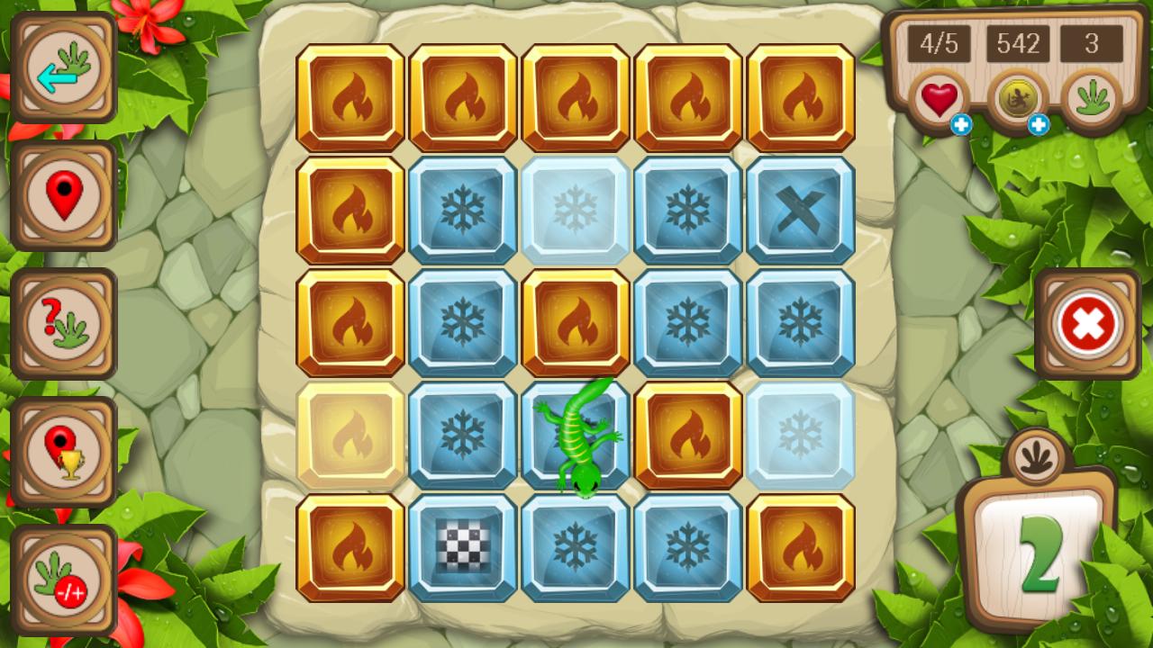 On its way, it has to overcome hot fields and cool shade, without overshooting his mark or stopping. If you make clever combinations and have the Gecko jump correctly, you‘ll crack the puzzle!