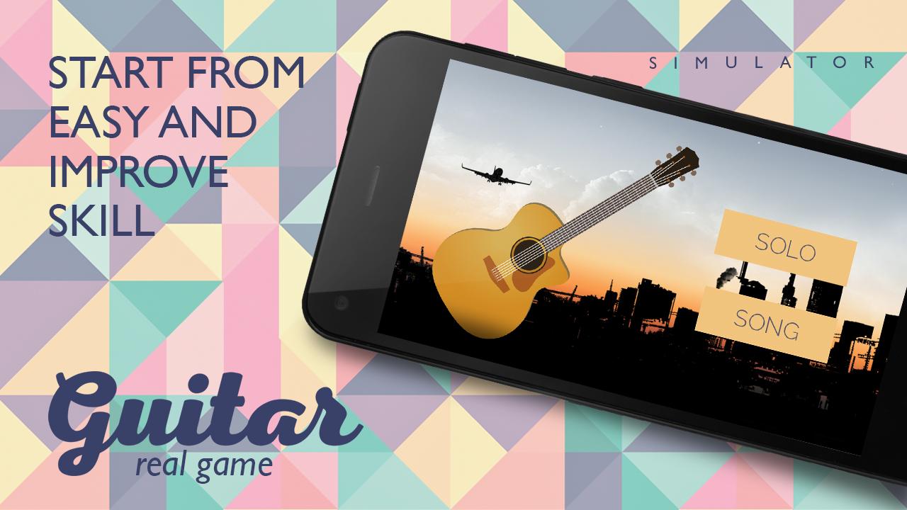 Guitar Game Real is an easy self-teacher to learn playing classic guitar: tap with your fingers the virtual strings to play chords and melodies! Want to learn playing real guitar? Want to be a rock star? At screen there are strings and instructions what you need to do. Look at the screen and do exercises. Show your friends how you’ll rock the party if you learn! Train guitar playing in application Guitar Game Real. Begin to learn simple chords and continue to complex melodies. Learn how to play on the phone, and then learn how to play guitar.