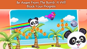 Collect as many orange coins as you can. Special rainbows coins are very powerful tool to boost your score. Jump towards the flying birds, they will shoot the panda like a jet rocket, this way you can progress faster to the next world.