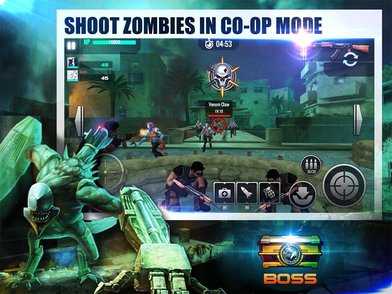 - Enjoy rich gameplay in campaign mode, survival mode, real-time PVP and zombie CO-OP mode