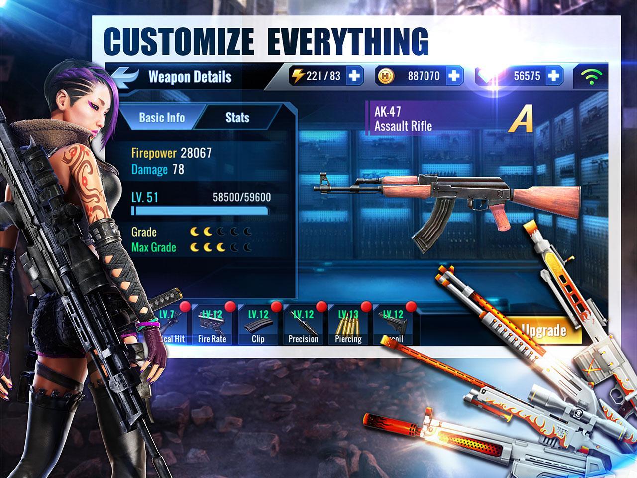 - Name your favorite gun, we got it! Upgrade your sniper rifles, shotguns and even RPGs