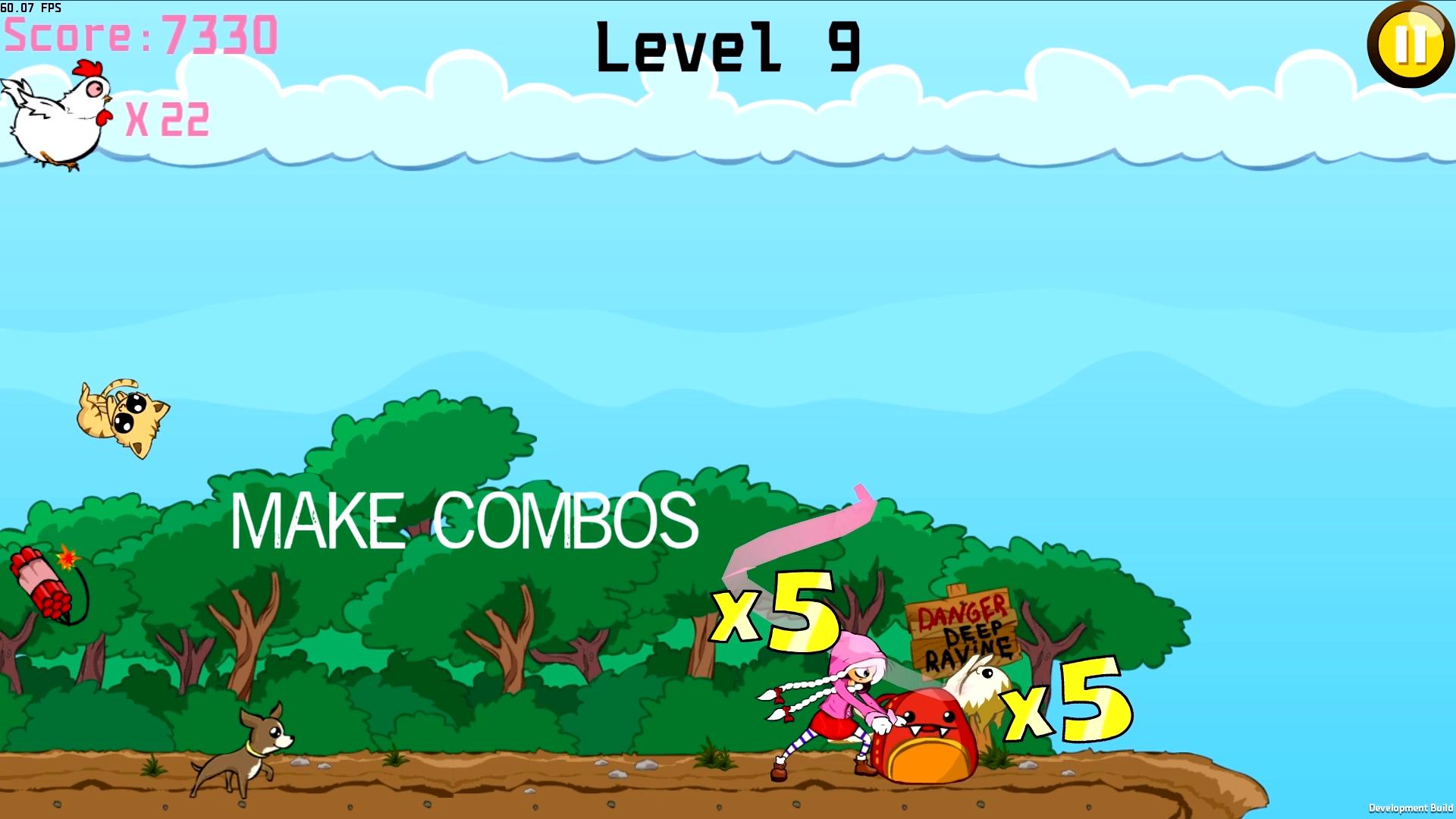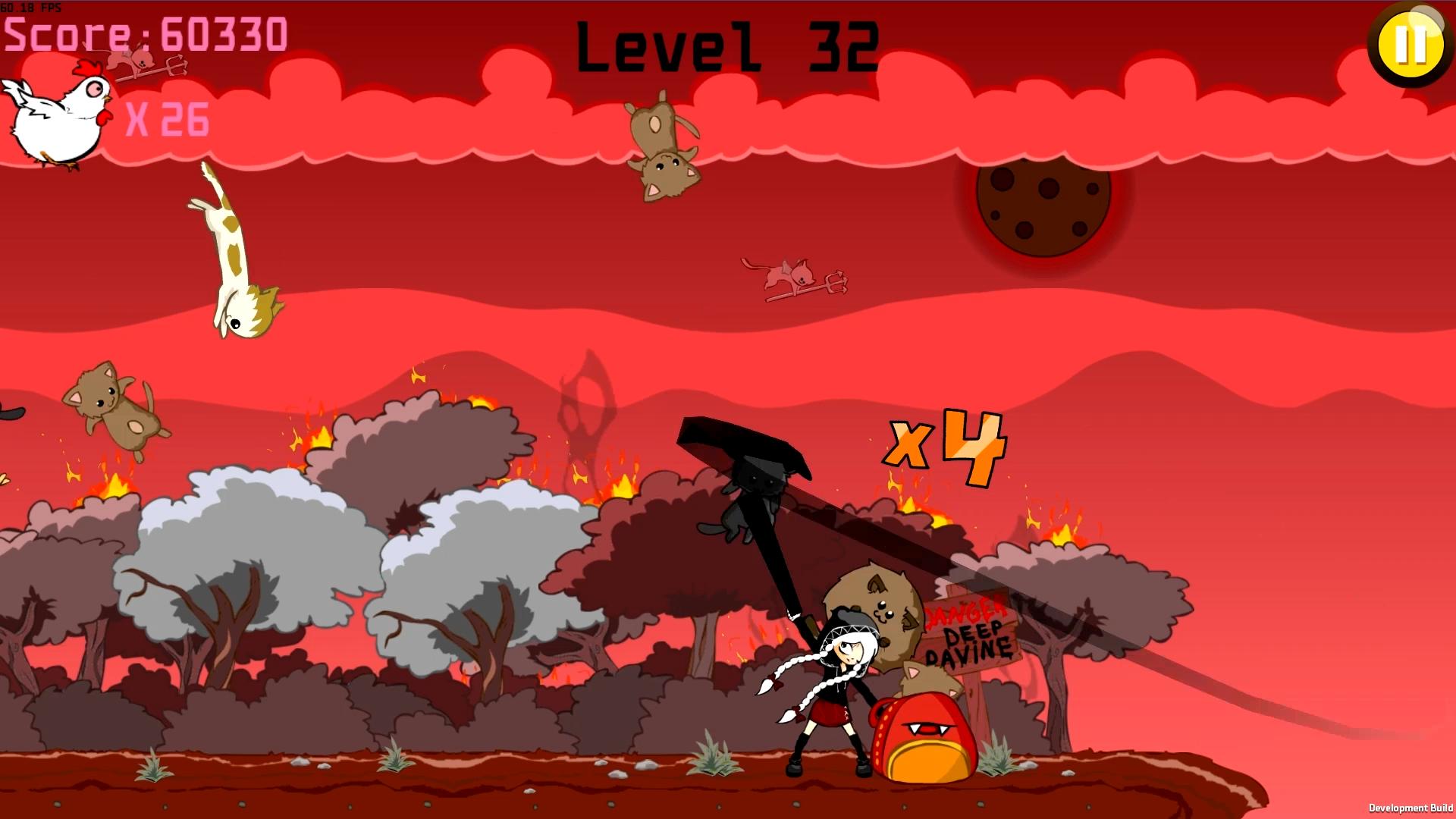 Use Hoodgirl's ribbon to catch the kittens, and avoid incoming objects at all cost! Don't hesitate to save the fat chicken too. He will be grateful and will help you save the kittens that you missed!