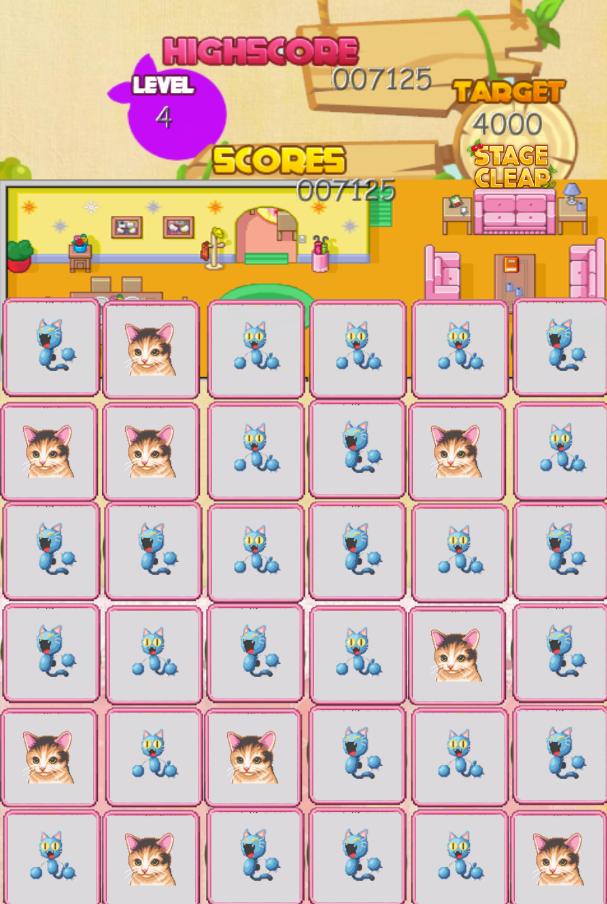 Tap on two or more adjacent cat to make them crush, and try to scoring as many points as possible!