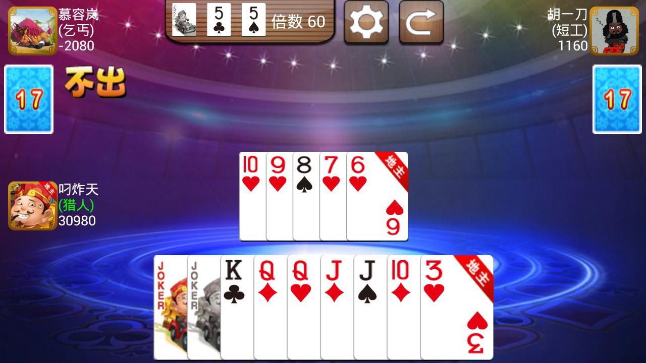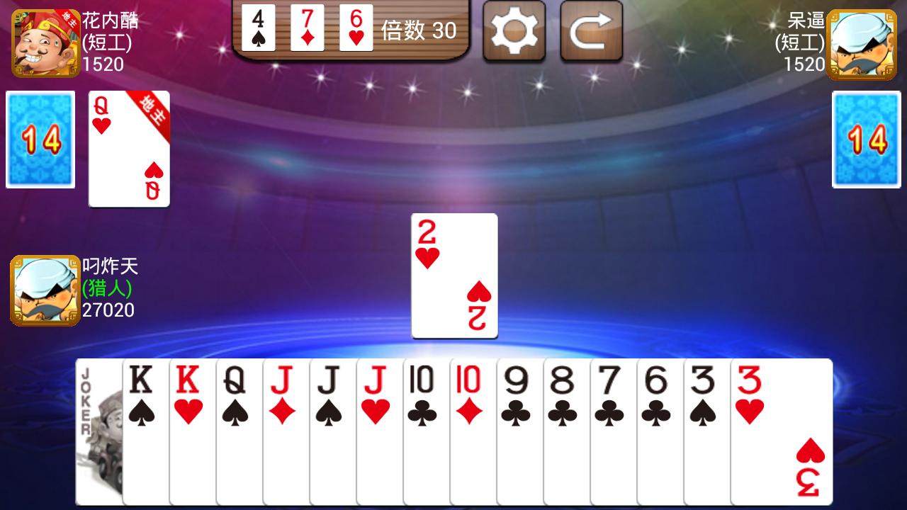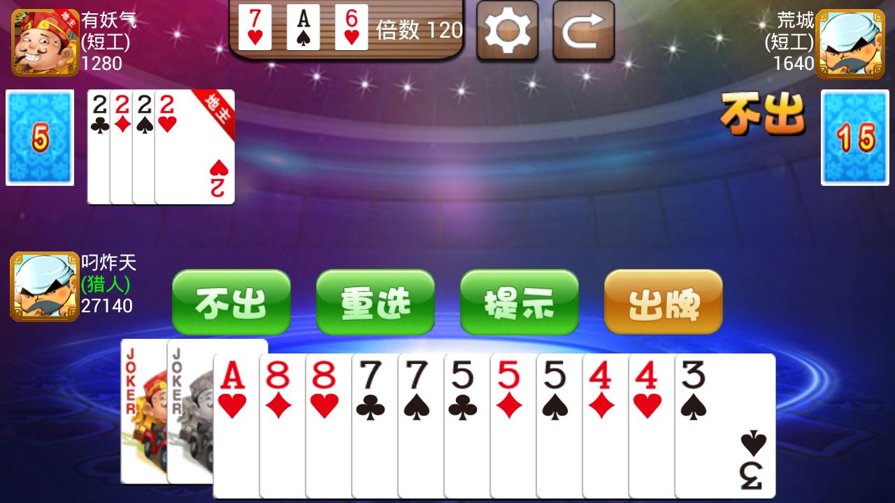 This Landlords is one very popular card game. There are three players in the card game,and they use one deck of cards. Successful bidders for the landlord, otherwise farmers. Two farmers together to "fight" landlord. The game finished either first-out cards is the winner.