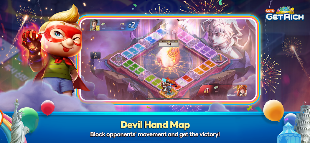 In LINE Let's Get Rich, it’s not just about luck—strategic thinking and sharp tactics are your keys to victory. Invite your friends and family, turn the tables, and show them who’s boss! Whether you’re destroying up cities, building landmarks, or pulling off game-changing moves, the thrill never stops.