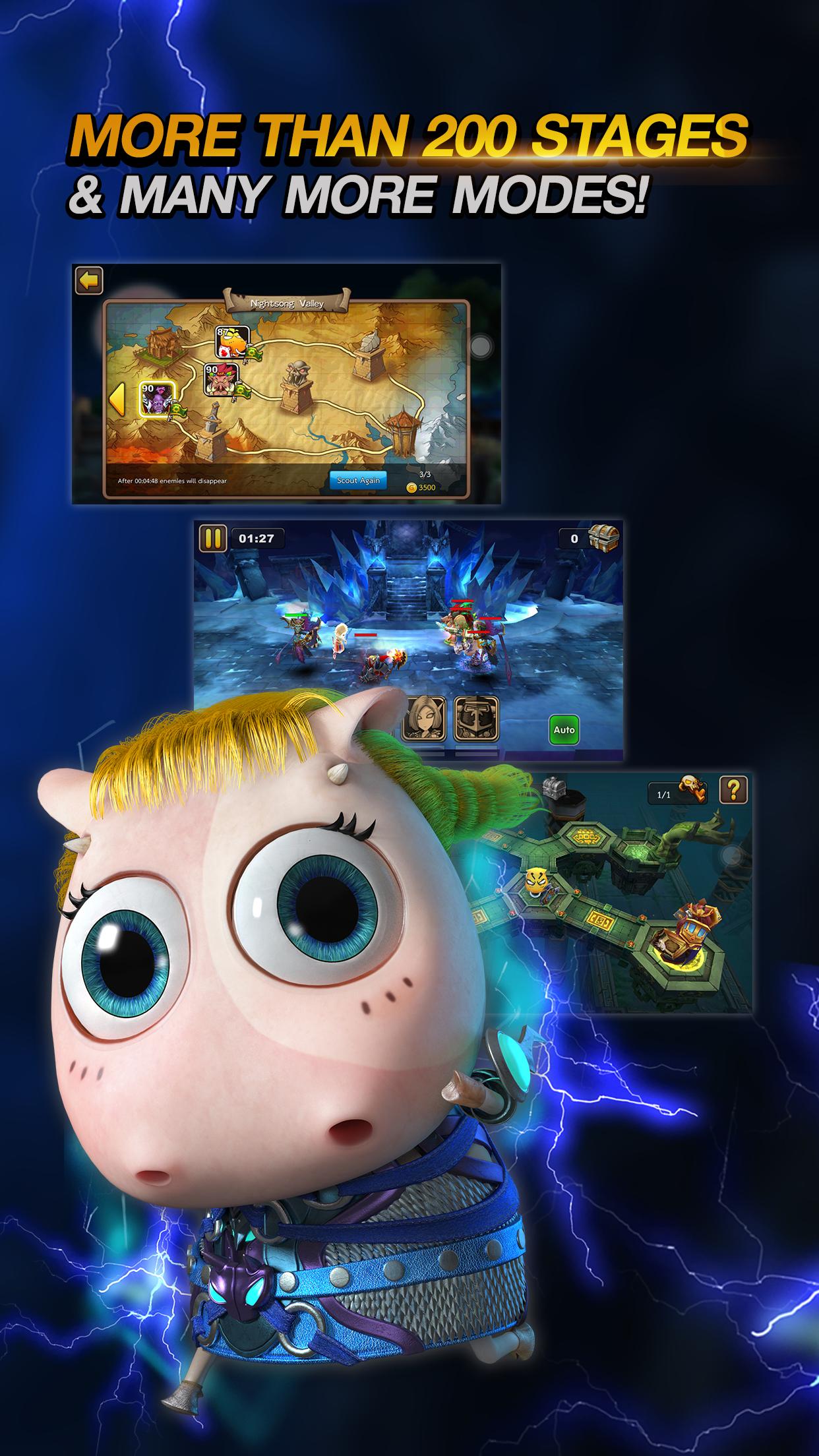 • Venture in astonishing vibrant 3D effect and 360° dynamic perspective in fantasy world. Embark on journey to defeat the monsters.