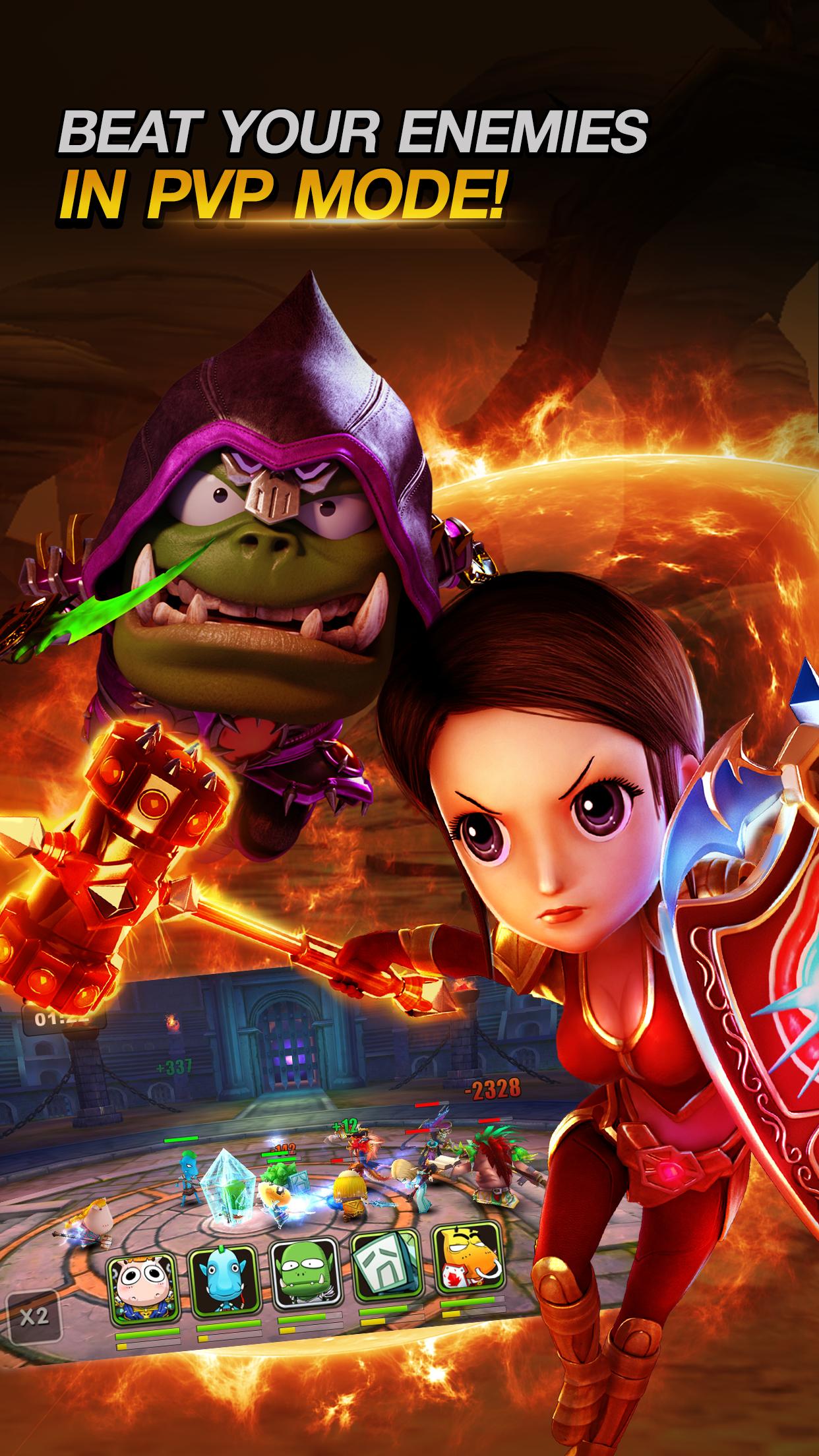 • Evolve your heroes to a higher rank to strengthen your overall attack and defense.