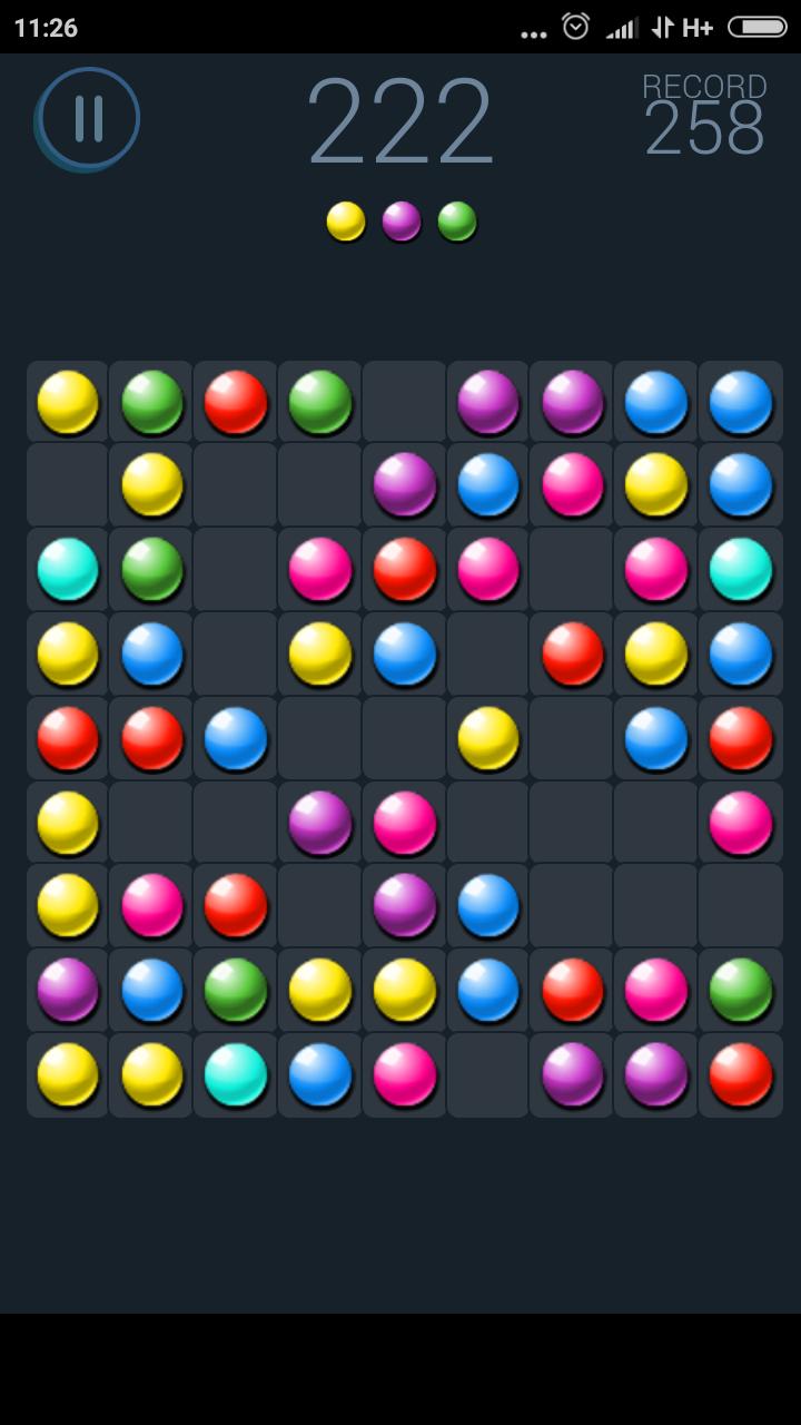 This strategy Game will make you think and concentrate for hours if you accept the challenge. It starts with a squared board of 9 by 9. The game will randomly place three color balls on the game board at every round, you have to strategically select one ball (click on ball) and move it to the most convenient location (click on target square).