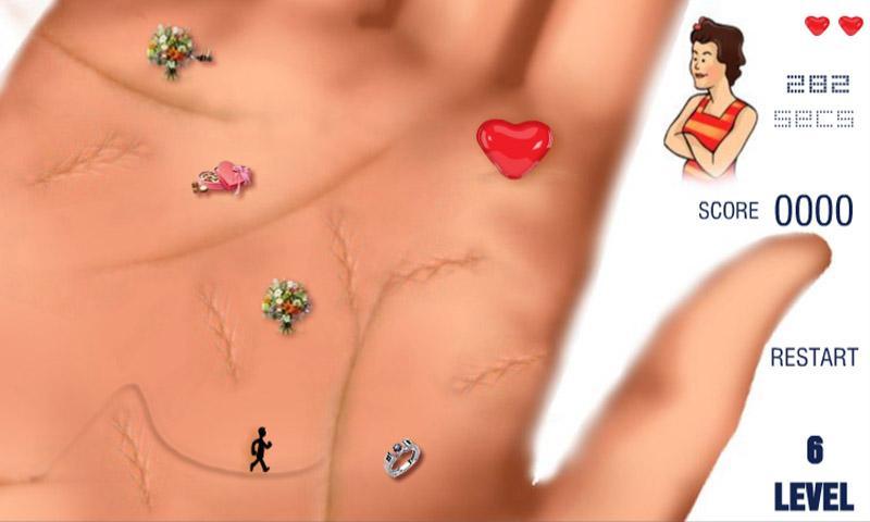 Draw a line on the hand to create a pathway to the flowers and hearts so you can grab them!