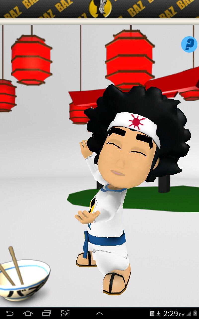 Shake your cell phone and annoy miniBAZ touching her hands.