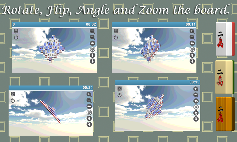 Mojo Mahjong 3D is a collection of free mahjong solitaire layouts in a fully 3D world. The board can be flipped, rotated, while playing the game.