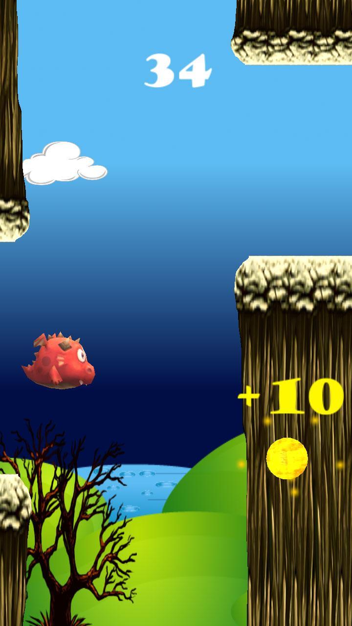 Guide the little fat flying dragon through the obstacles.