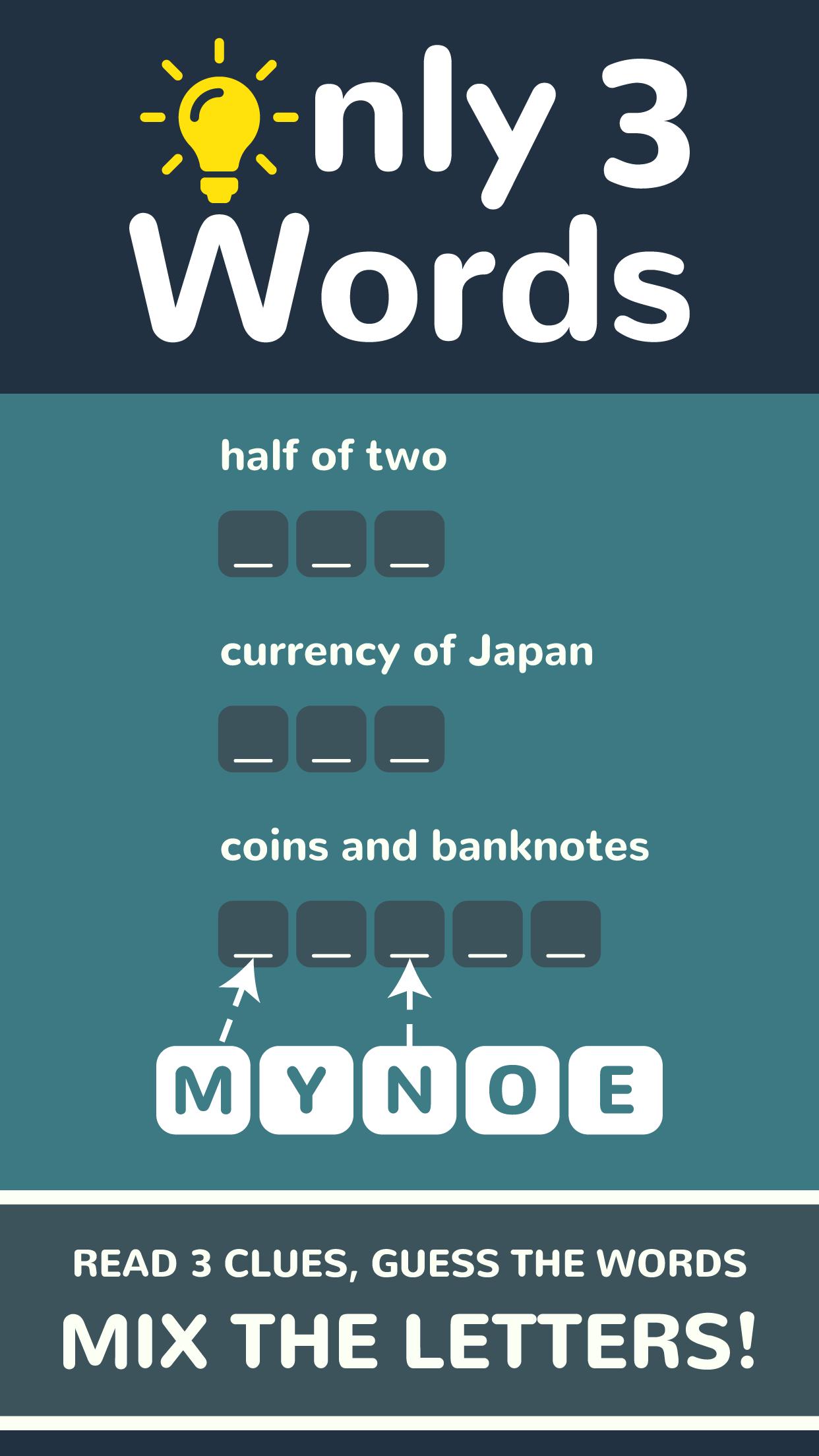 Have a great time together with your family with all the amazing word puzzles from Only 3 Words!