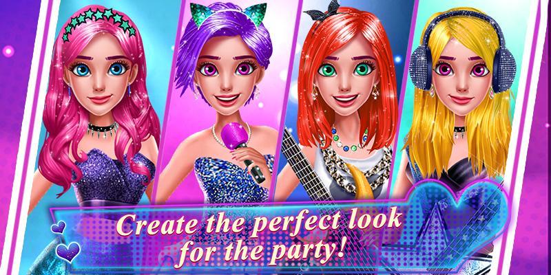 Make yourself even more beautiful with your amazing glitter tools! Glam up with cool facials and sparkle hairstyles! Use professional makeup tools to create the real rock star look! Design your stunning dress and add pop stickers! Show off your Music Party style with the most awesome outfits and accessories! Hope you have lot’s of energy, it’s gonna be a total blast!
