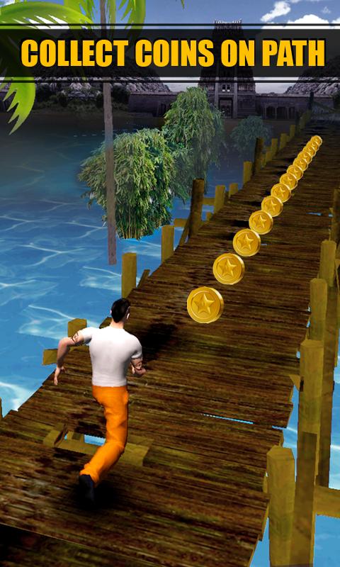 You have just broke out from a hard time prison heavily guarded by the police. Run for your freedom and escape the jungle path with multiple hurdles to jump, swipe and climb over. Police officer is right behind you, and getting caught means more life behind the bars. Begin your endless run against the police chase. There are multiple hurdles on your way to cross. Jump over the broken paths, slide beneath the rocky mountains and climb over the side walls to avoiding falling into the deep water. The police is chasing you down in an attempt you knock you down before taking you back to the temple prison. Plan your prison escape mission perfectly. Collect coins along the way to help yourself get powerups and resurrect.
