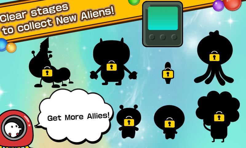 Become Allies with adorable Aliens living on different planets and clear tons of different stages with them!
