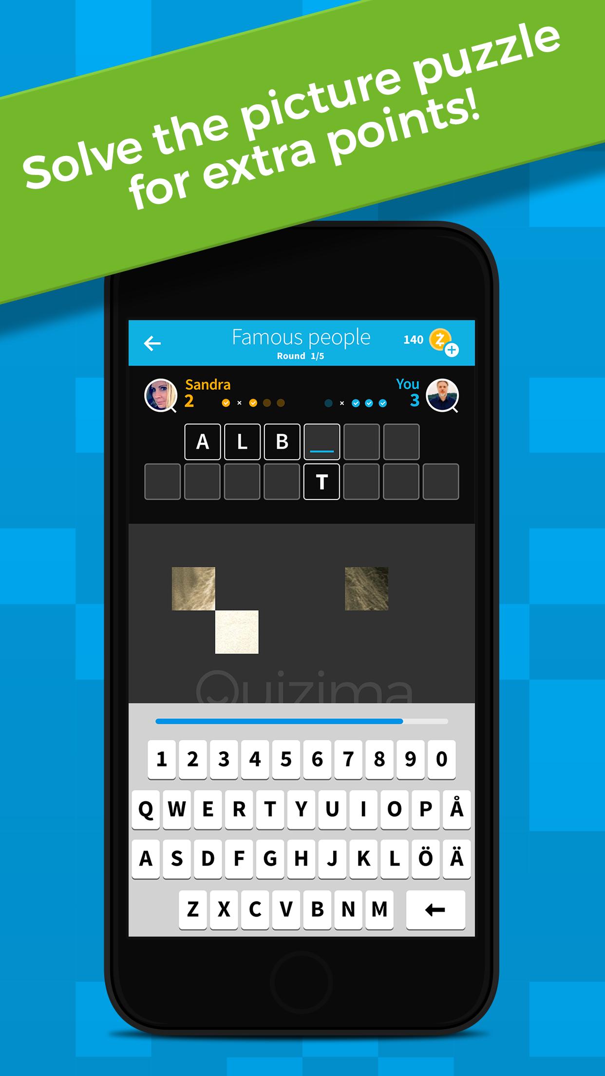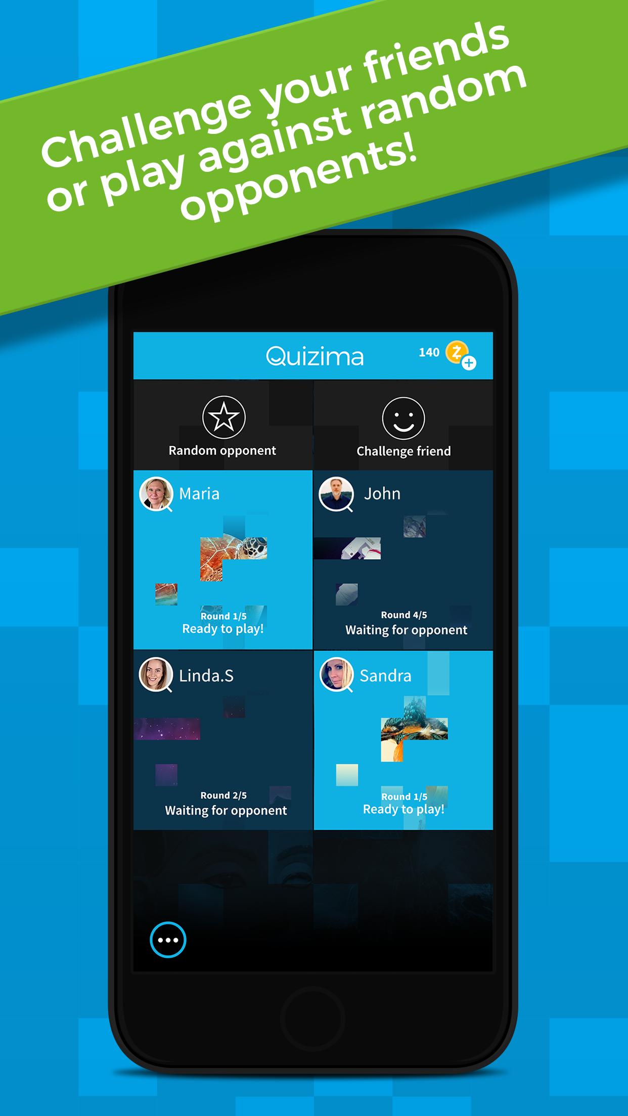 Quizima let's you unveil the secret image as you answer quiz questions correctly. Play against your friends and random opponents to see who can recognize the hidden image. The player with the highest score at the end of round five wins the match!