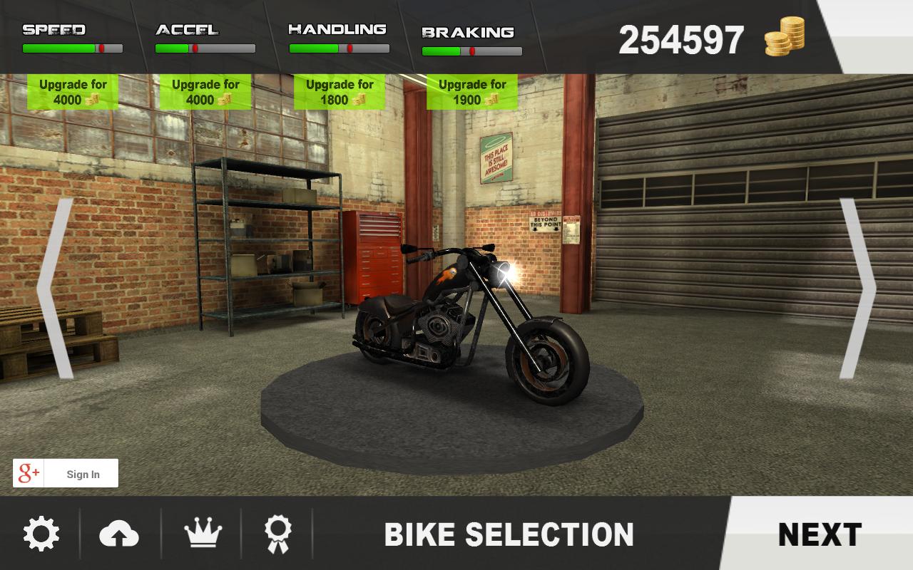 - Upgrade your motorcycle (Speed, Acceleration, Handling, and Braking)