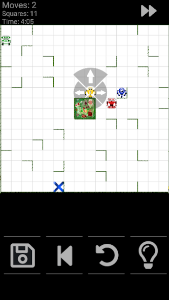 You control four robots in a yard full of hedges, that block their way. The goal is to guide a particular robot to its destination. The robots move until they either hit a hedge or another robot.