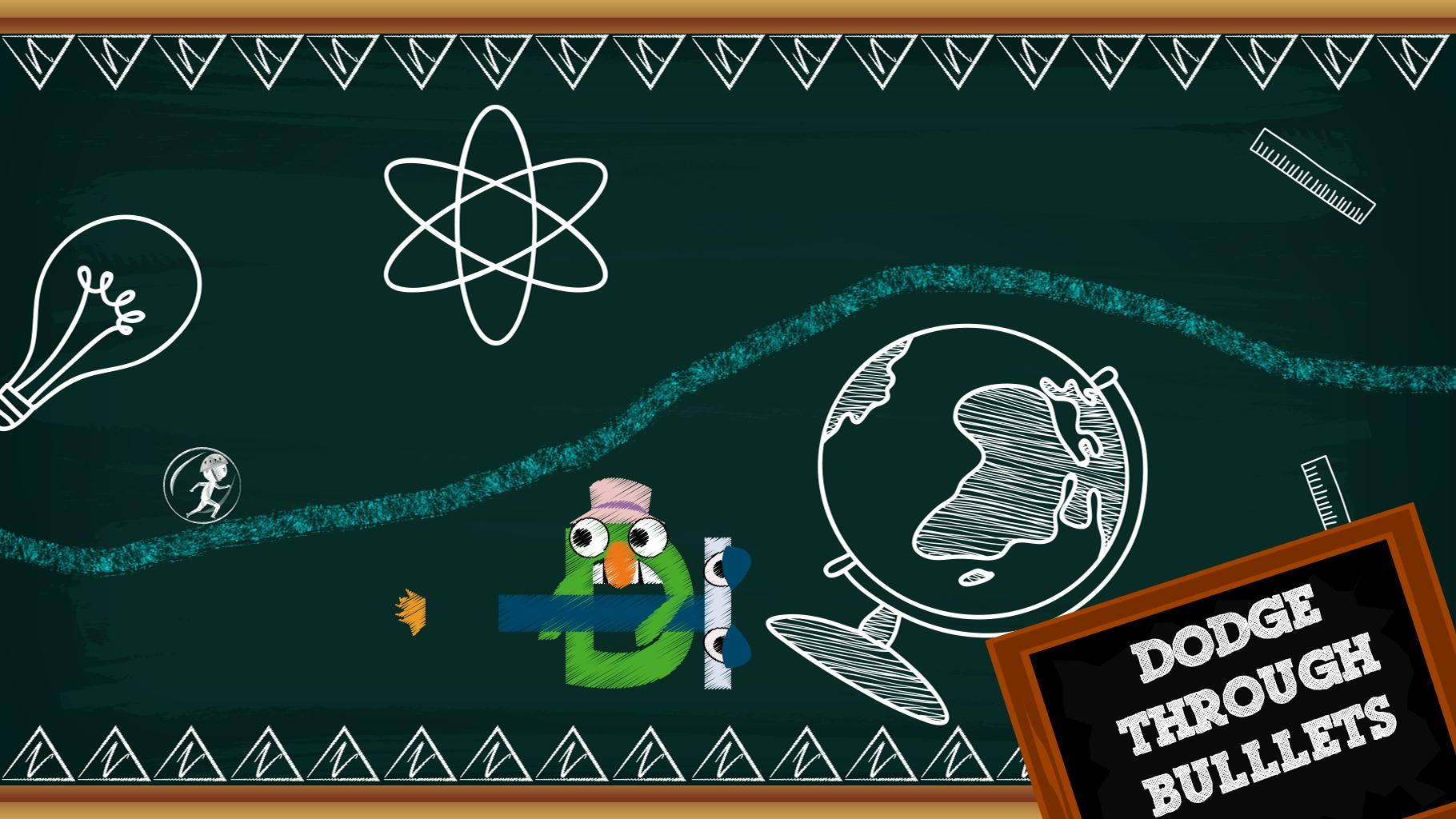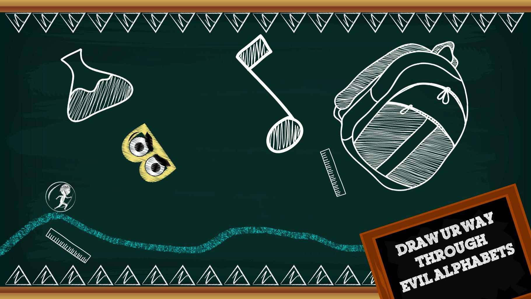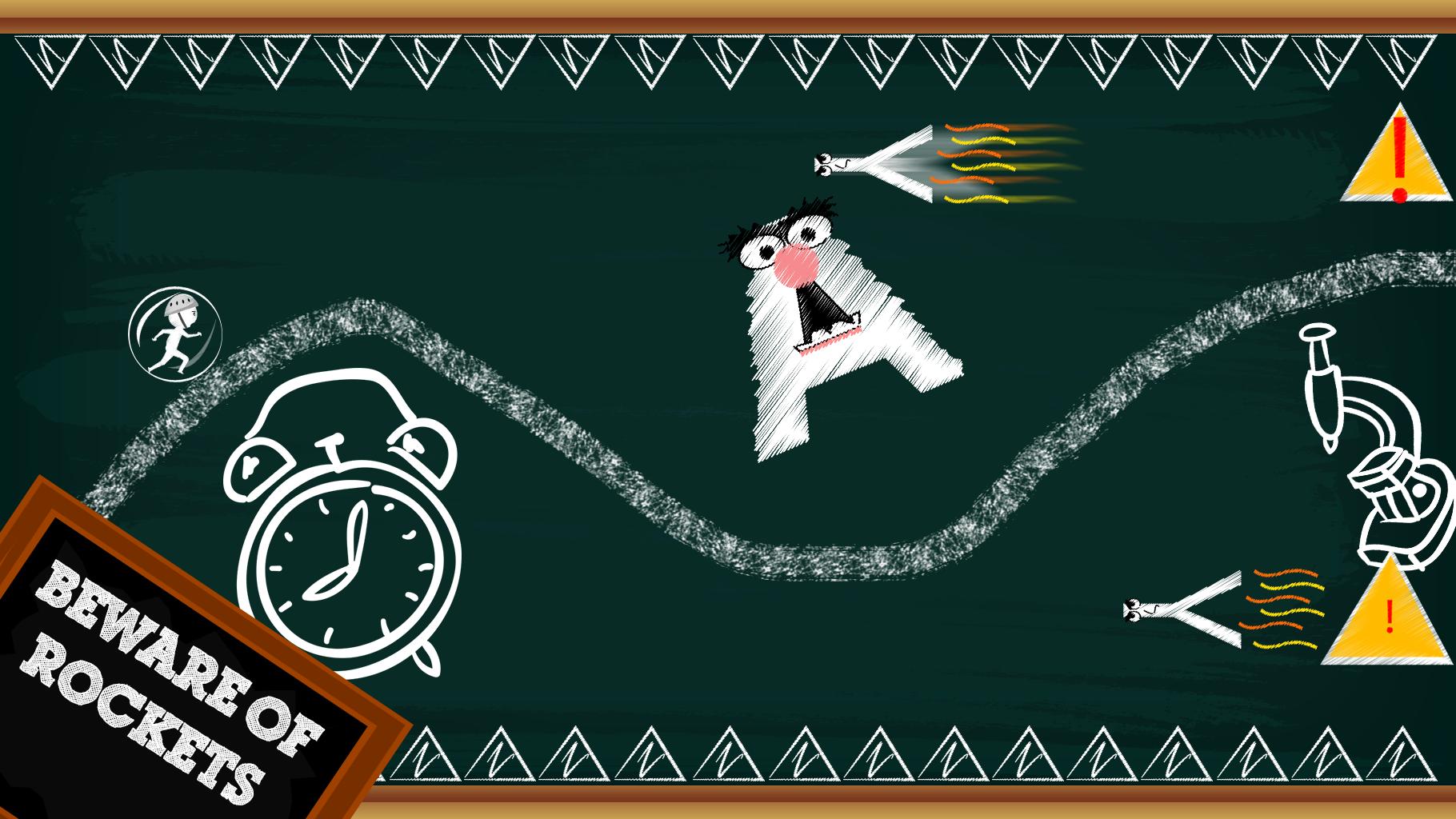 Looking at chalk board he wishes to race through the alphabets and symbols.
