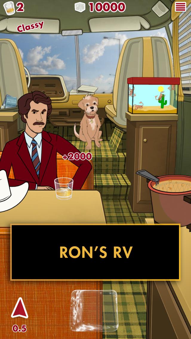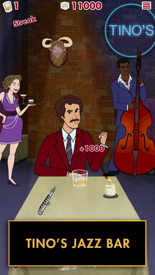 Hello friends, legendary anchorman Ron Burgundy here to describe the greatest app in the history of western civilization, "Scotchy Scotch Toss." This mobile game, which I personally developed, combines my two favorite things: Scotch, and playful exchanges with total strangers. Simply toss ice cubes into my glass of Scotch and I'll offer neighborly encouragement. OR, miss your shot and I'll flog you like a petulant mule. Either way you're going to hear about it!