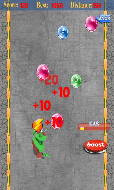 In the “Skateboard Monster” you get the thrill and adventure of the high speed on skateboard. The monster is crazy about skateboarding. He needs full adventure of the craziest speed as well. So help this crazy monster to gain highest speed and maximum distance completed on the skateboard. Roam around the city with fun. Tap and pull the catapult when monster is loaded, then release to launch. When you pull and release catapult monster will start running with the skateboard on the road with a great speed. Tilt your device left and right, to steer the skateboard, and hit as much gas coming in the way as possible. These different gas stuff will give high speed and energy to the skateboard. Monster will convert the crushed fuel stuff in gas, so he can run faster and faster.