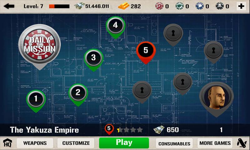- Loads of different weapons, find new scopes and silencers on your mighty sniper rifles