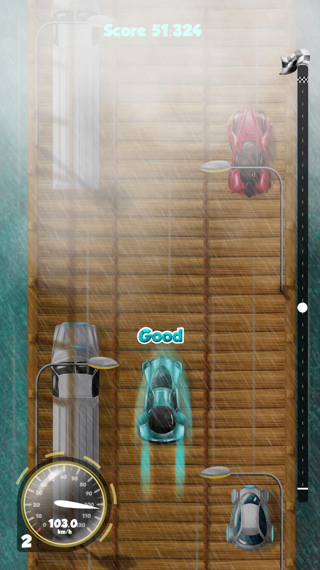 Shake your device to control your car. Noted that: Avoid collisions with other vehicles to achieve the highest score during the race.