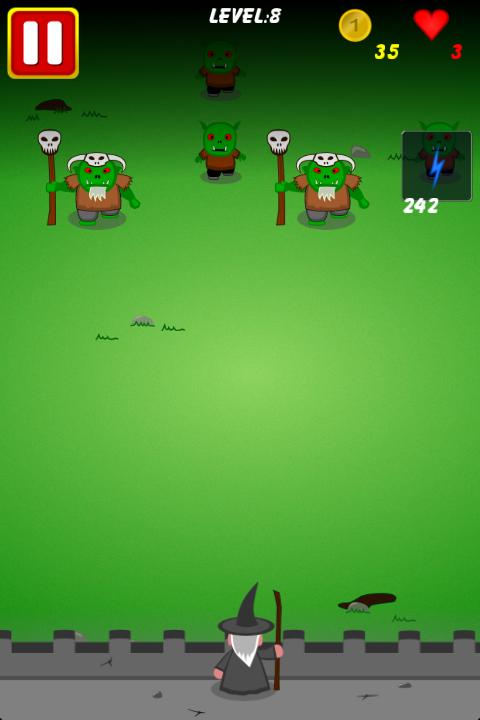 Shoot the Orcs and do not let them get into the village! The Orcs have broken the village's gate and are about to get in. Handle the wizard and prevent the Orcs from getting into the village, dodge their attacks and get coins in order to buy new weapons in the shop. Surpass the eight levels of this arcade game and save the village from the Orcs. Enjoy the adventure!