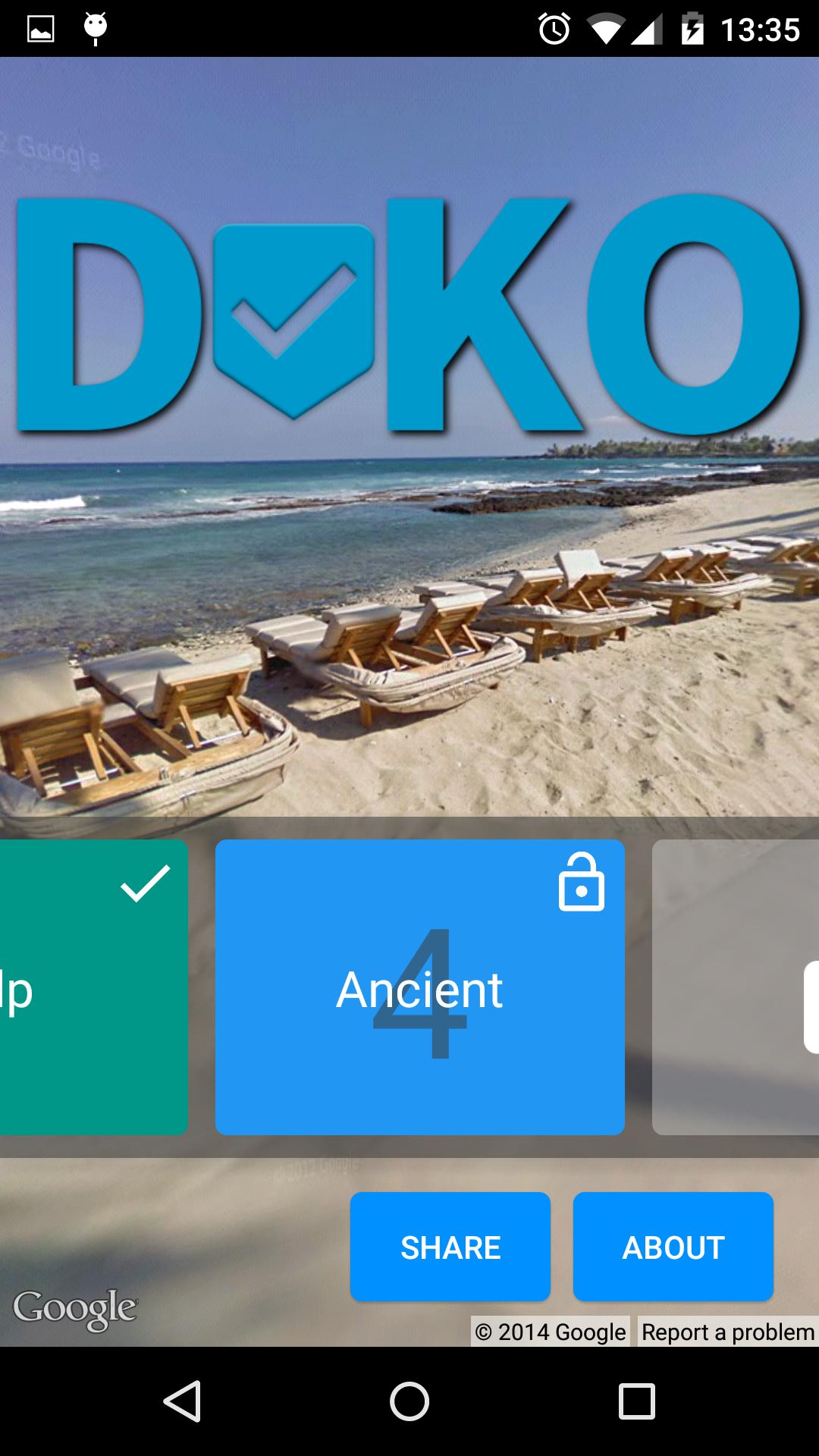 DoKo is a game also known as Where Am I? It will bring you to some random places on our nice planet and you'll have to figure out where you are by moving, zooming, searching.. Some are easy, some are harder! Nice new way to learn about geography and learning to discover places.