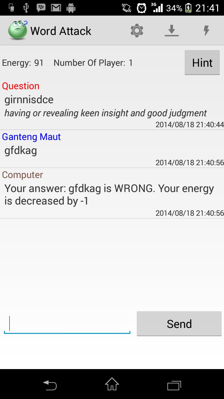 1. You need to answer correctly before anybody else. Think quickly, your typing skill determine who wins the Game. You will earn energy with value same of number of letter.