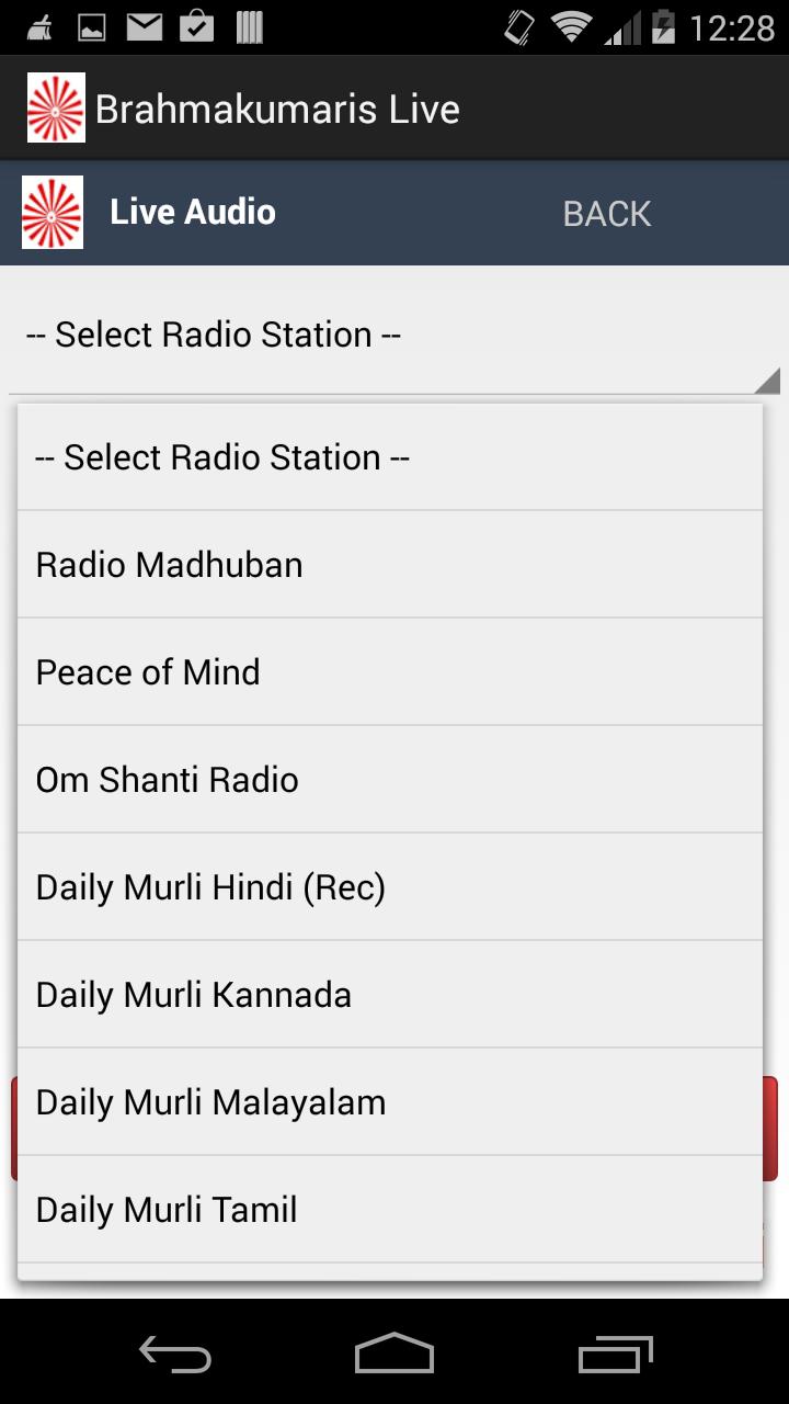 Dengarkan Murli dari Diamond Hall setiap pagi di ponsel Anda. Anda juga dapat mendengar berbagai program yang direkam dan langsung dari Brahmakumaris, Madhuban - Gunung Abu.