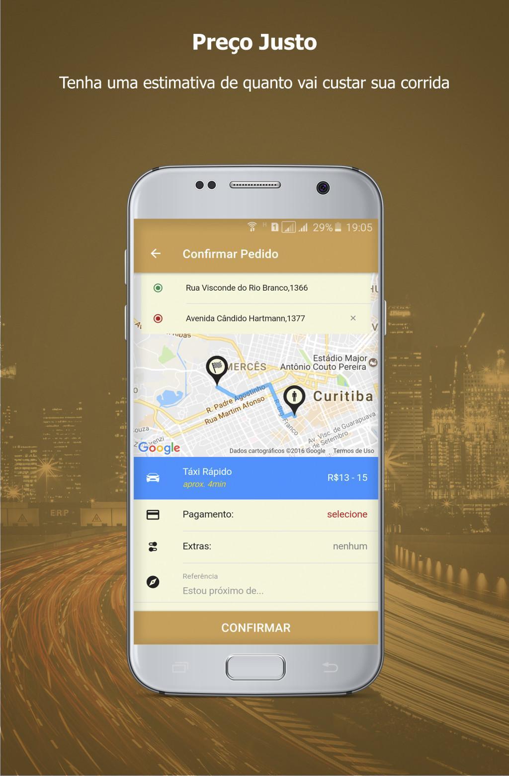Aplikasi baru dari pemimpin taksi tiba. Adalah bagi Anda untuk meminta taksi dari ponsel cerdas Anda dan berkomunikasi langsung dengan kendaraan terdekat dengan Anda, tanpa menelepon pusat kami. Ini adalah cara yang gesit dan aman untuk memesan taksi di kota Curitiba dan wilayah metropolitan.
