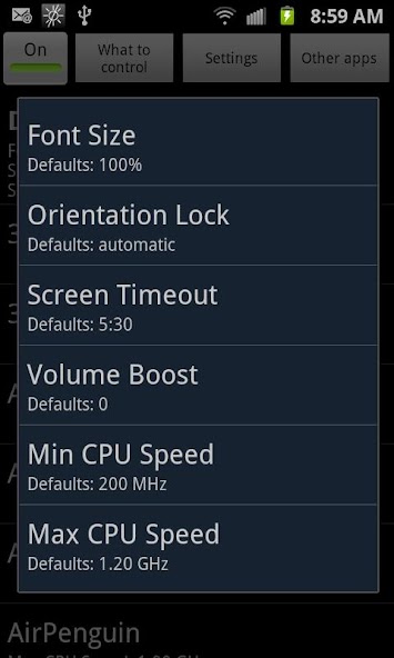 PerApp memungkinkan Anda menyesuaikan perangkat Anda dengan pengaturan individual per aplikasi.