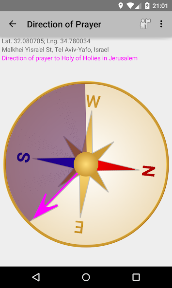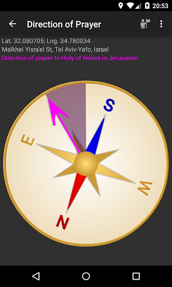 Kompas yang menunjukkan arah untuk doa -doa Anda ke Kudus Holy di Yerusalem, Israel.