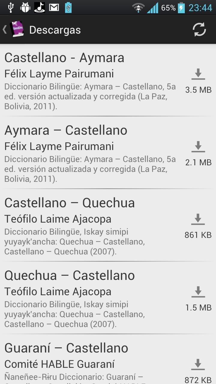 Kamus bebas/open source prist, termasuk Aymara, Quechua dan Guarani.