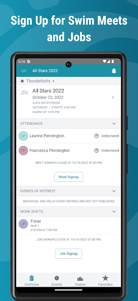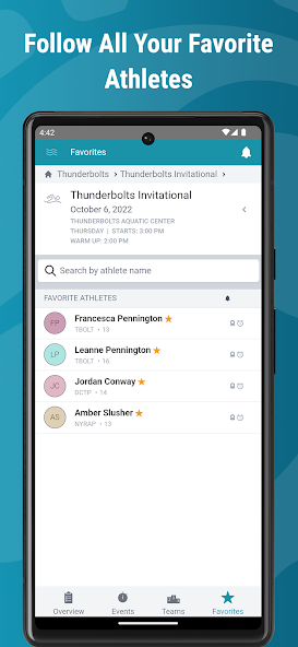 SwimTopia Mobile membantu menjaga anggota tim dan bertemu dengan penonton yang lebih baik. Anggota tim yang menggunakan SwimTopia dapat menerima pemberitahuan dari tim mereka dan melihat tim mereka dan info perenang secara gratis, sepanjang musim. Acara Langsung/Indikator Panas ** menyiarkan apa yang terjadi di kolam renang selama pertemuan secara real time, jadi tidak ada yang perlu melewatkan berenang lagi! Ketika Meets dijalankan di Meet Maestro, SwimTopia Mobile menyediakan semua info yang perlu diwariskan untuk tetap up-to-date pada hari-hari bertemu ketika mereka memiliki langganan pro.