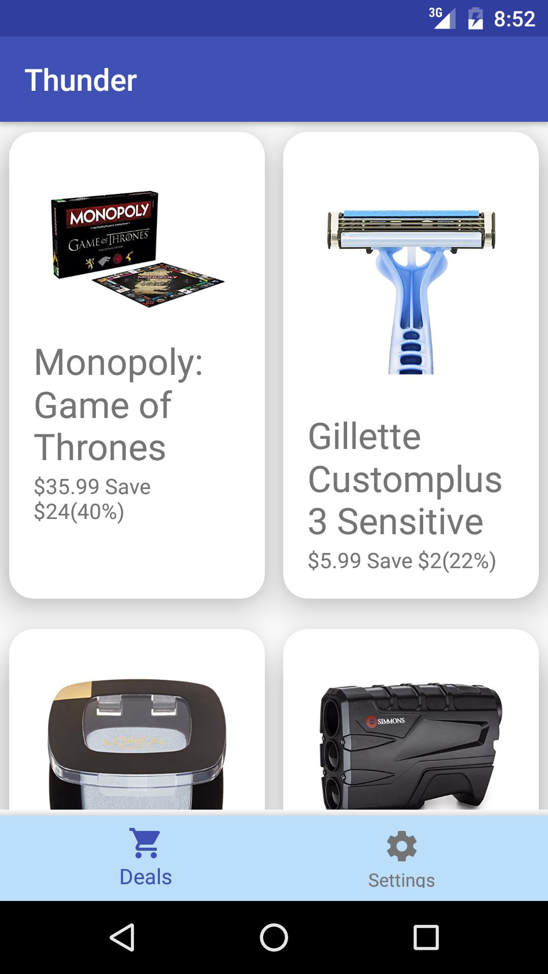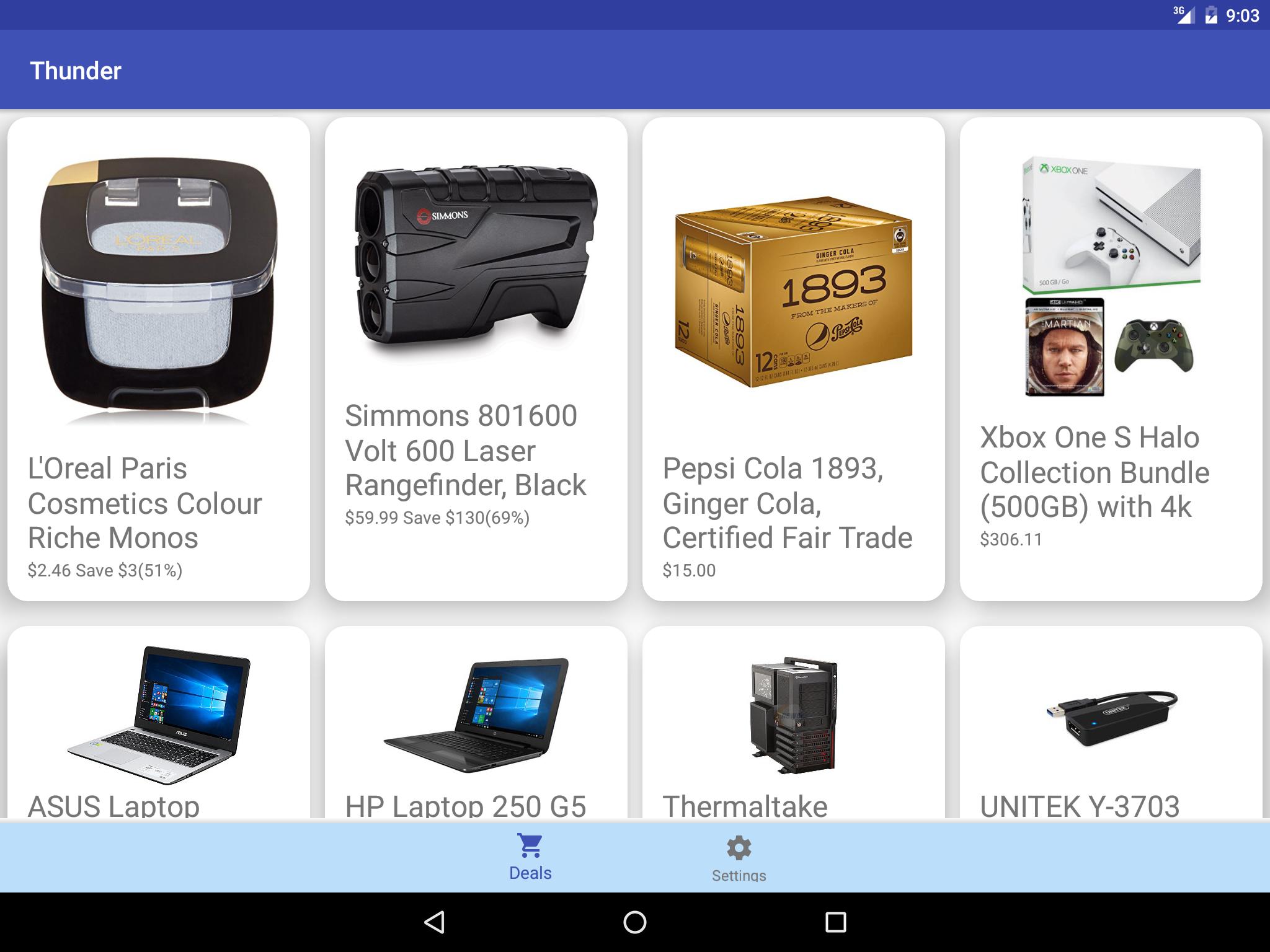 Thunder adalah pencari kesepakatan terbaik yang membantu Anda menemukan produk yang Anda sukai, dan kemudian memberi tahu Anda tentang penurunan harga, serta membandingkan harga di berbagai pengecer.