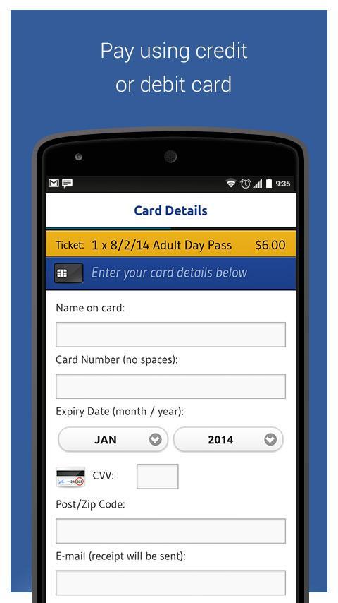 Cukup pilih acara Anda, tunjukkan jumlah pengendara, masukkan detail kartu pembayaran Anda, dan ponsel Anda adalah tiket Anda untuk naik.