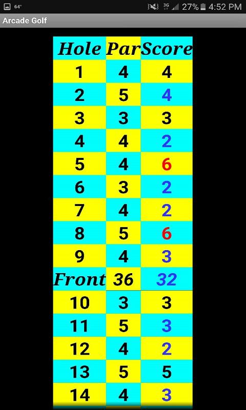 Mainkan putaran di 18 lubang dan cari tahu apakah permainan Anda berada di atas (atau di bawahnya). Game golf gaya arcade ini akan membawa zaman keemasan game ke ujung jari Anda. Jangan terlalu nostalgia karena kursus ini diisi dengan kasar, pohon, perangkap pasir, dan bahaya air untuk menantang Anda. Game yang membuat ketagihan yang menyenangkan untuk segala usia dan tingkat kemampuan. Arcade Golf akan secara otomatis menyimpan 3 putaran terendah Anda sehingga Anda dapat menantang teman, rekan kerja, teman golf, dan Par Pria Tua Anda! Anda dapat memilih dan mengubah warna bola Anda. Lihat tutorial video untuk mempercepat proses pembelajaran dan letakkan nama Anda di bagian atas papan peringkat!