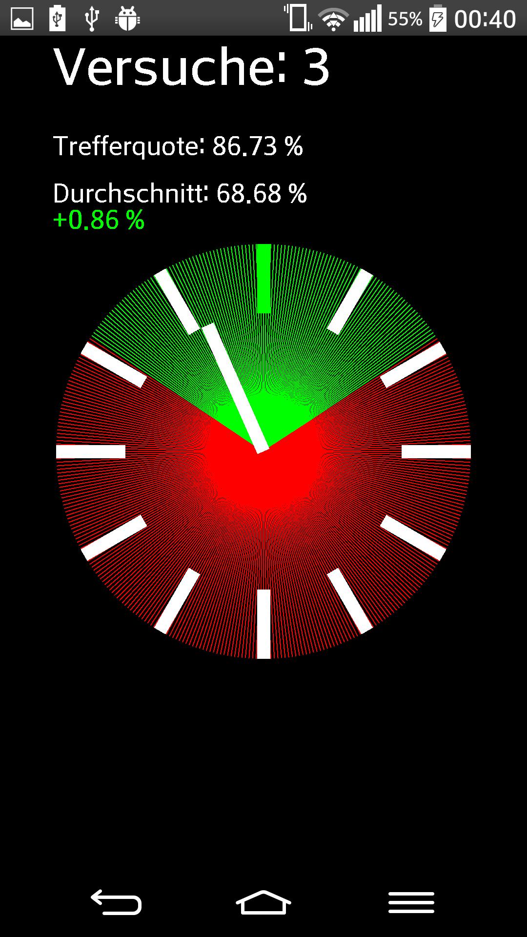 Anda harus mendapatkan 10 upaya untuk mempertahankan tingkat keberhasilan yang baik. Jika Anda 10 kali di bawah skor rata -rata Anda sendiri, Anda dapat melihat hasilnya dan Anda mendapatkan perkiraan seberapa mabuk Anda.