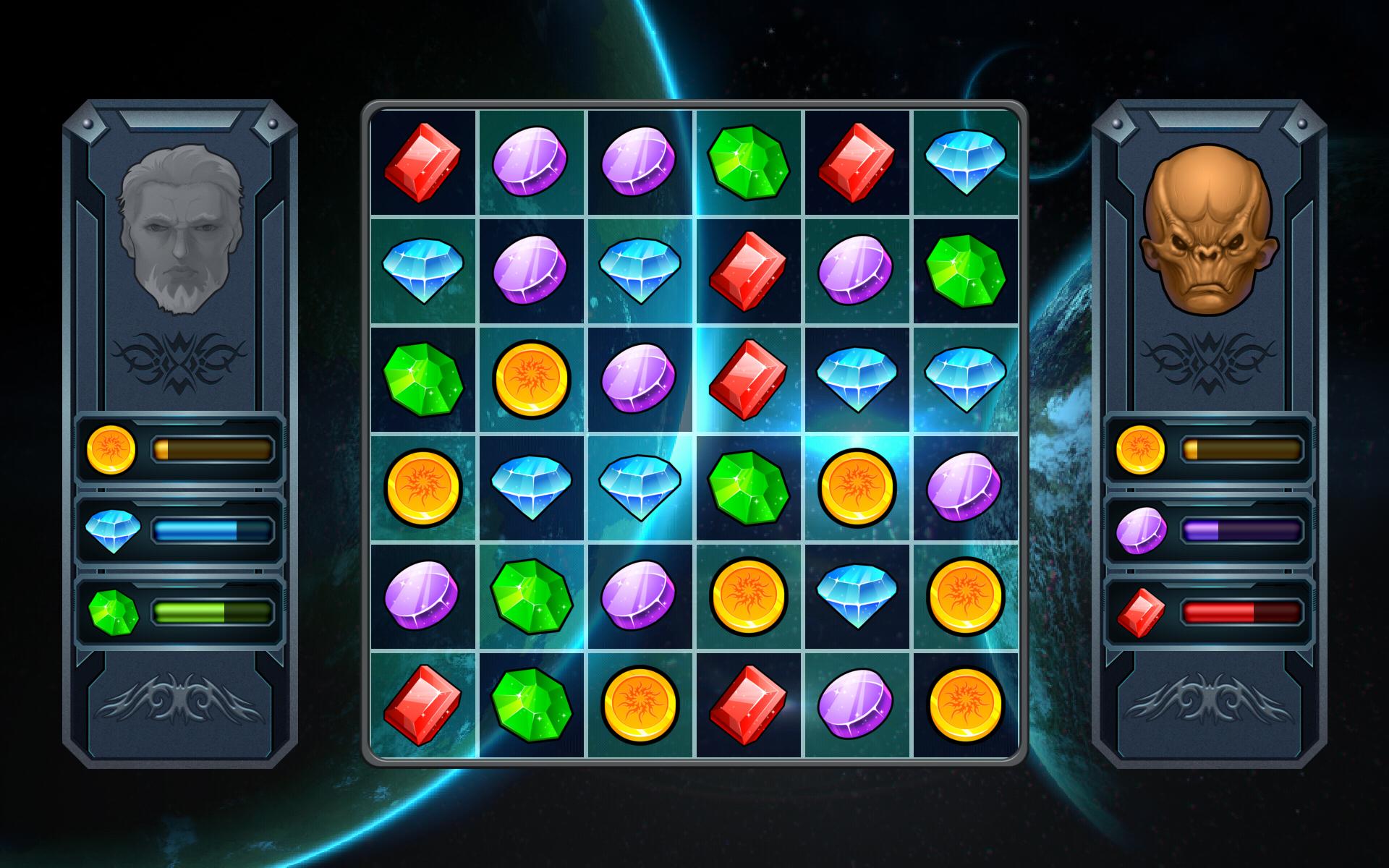 Cocokkan tiga perhiasan, permata atau artefak berturut -turut untuk mencetak poin. Dalam permainan puzzle pertandingan 3 berbasis giliran ini, Anda akan berhadapan dengan lawan alien yang cerdas.