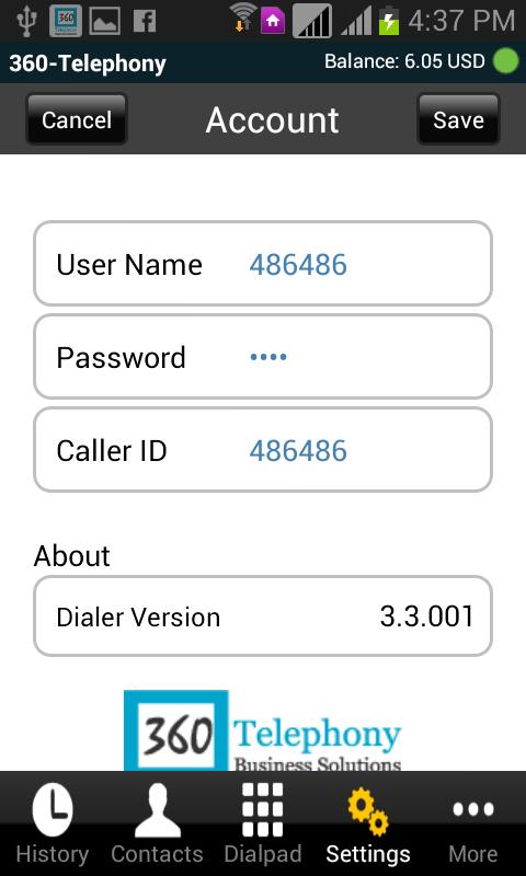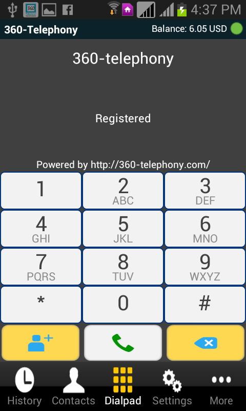 VoIPコールとSMS用の360 Telephonyモバイルダイヤラーアプリ