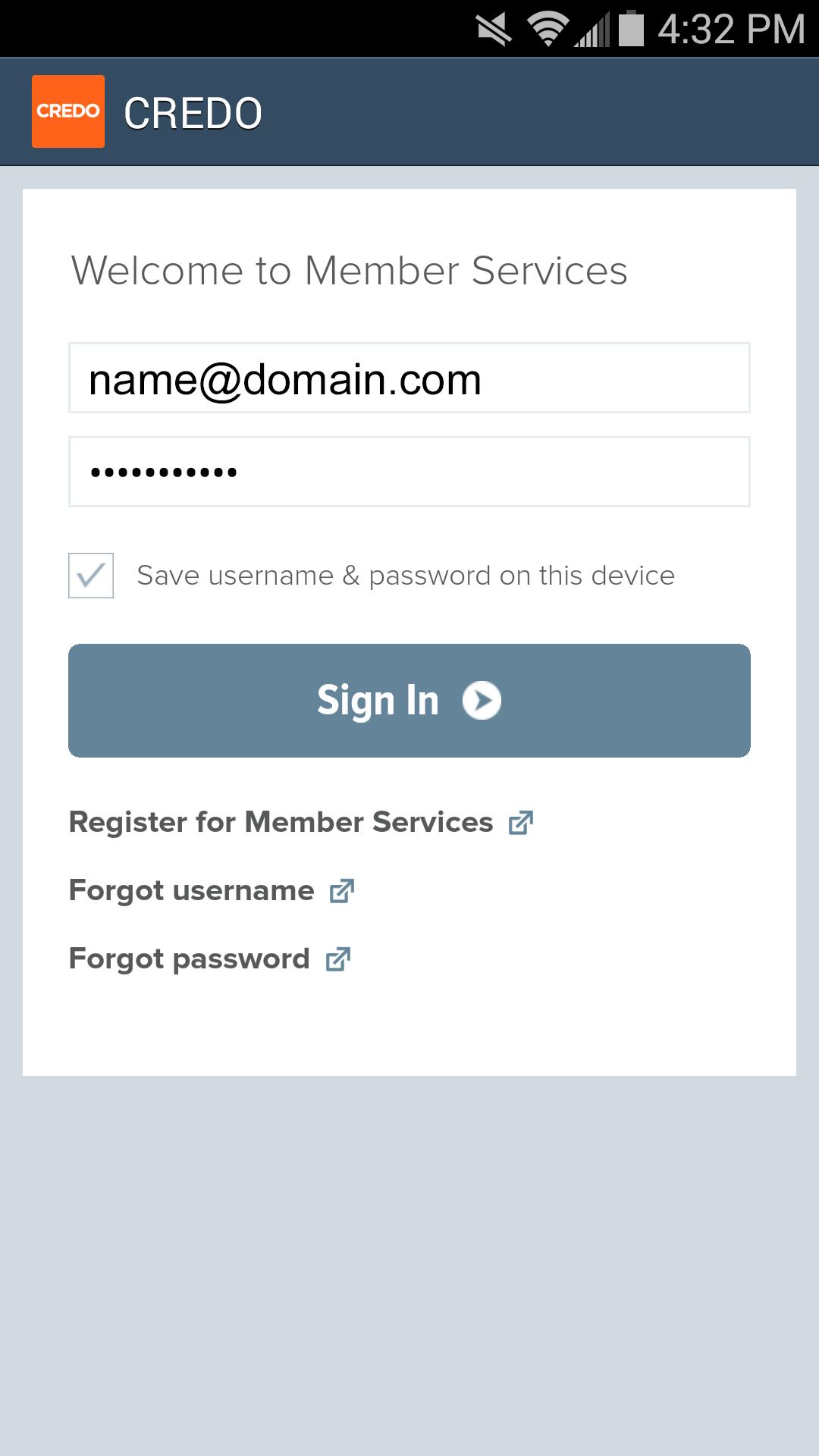 注:このアプリを使用するには、 CREDO Mobile顧客である必要があります。参加しませんか!詳細については、http://www.credomobile.comをご覧ください。